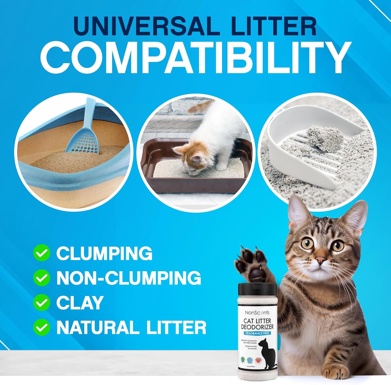 NonScents Cat Box Deodorizer - Odor Eliminator - Reduces Scooping, Extends Litter Lifespan - Fragrance-Free, Fresh Scent - 2-Pack
