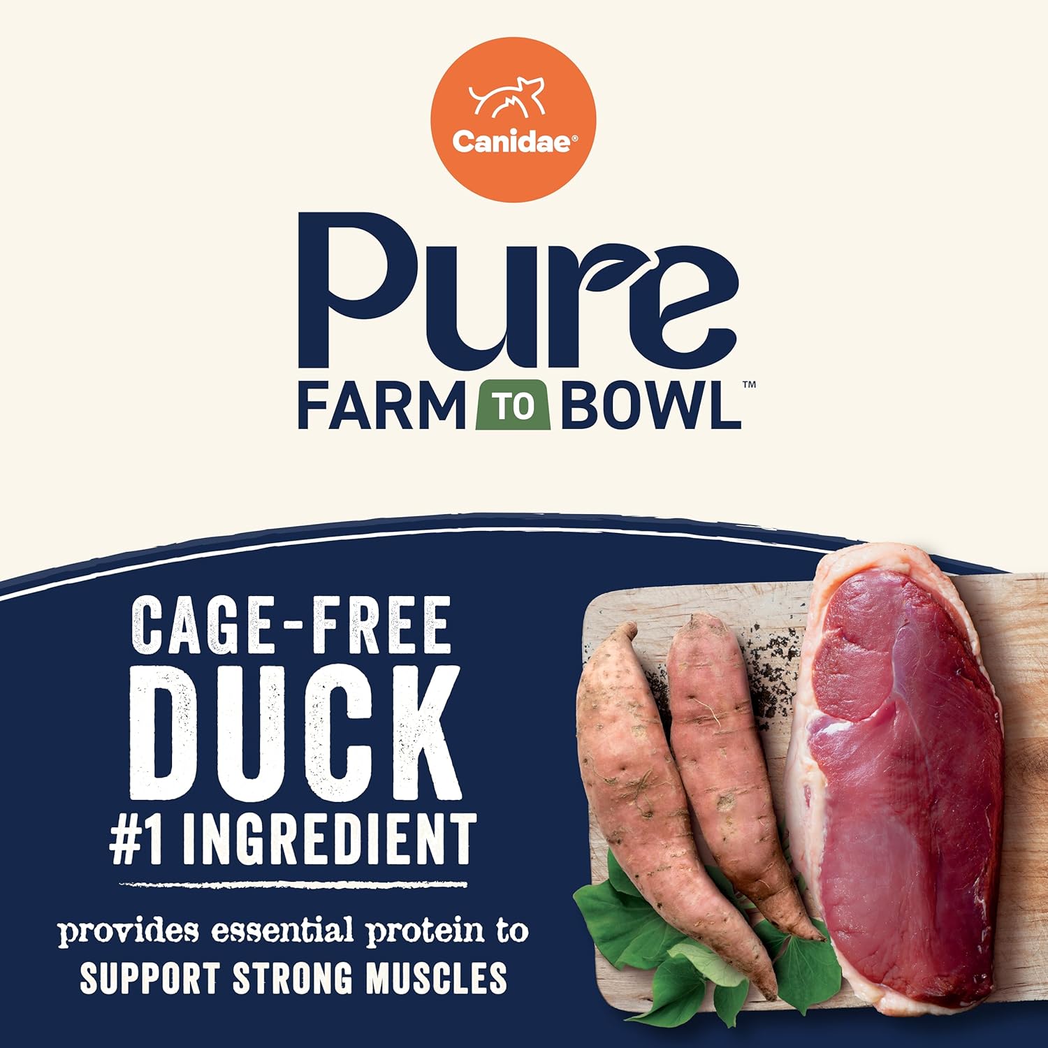 - Cage-free duck is our #1 ingredient, responsibly sourced to support muscle strength and overall health.