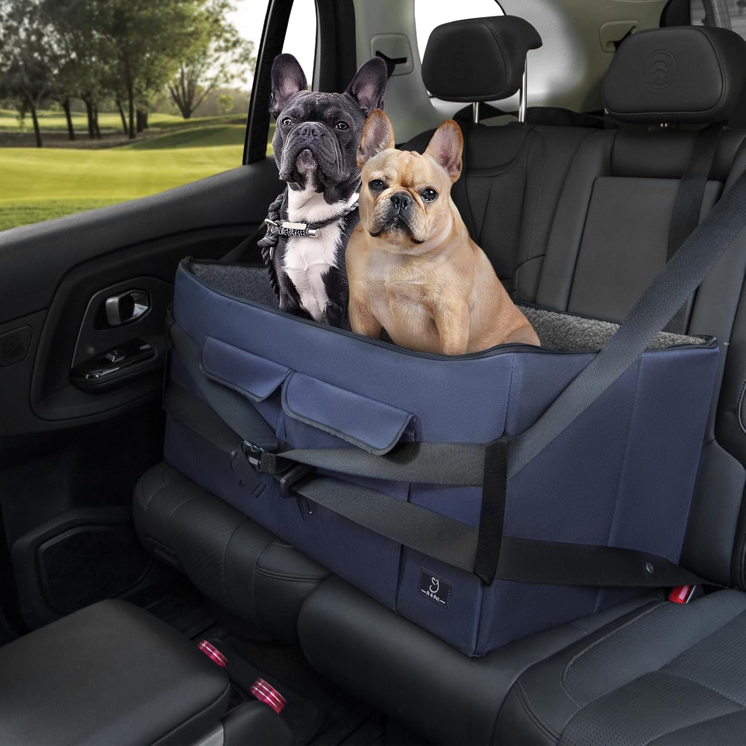 - Perfect Fit for Medium & Large Dogs: Measuring 30"L x 15.5"W x 13"H, this dog car seat for Medium/Large dogs comfortably holds pets up to 55 lbs or two small dogs. The spacious dog car seat fits securely in most back seats, providing a stable and roomy ride.
