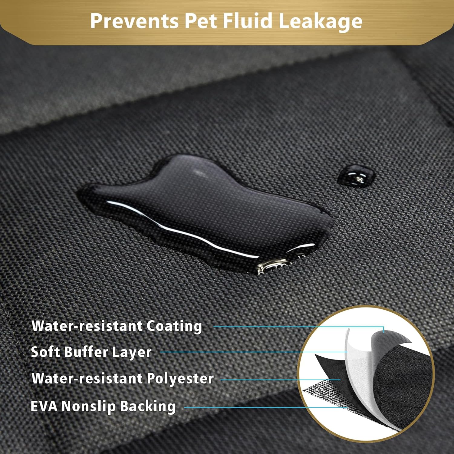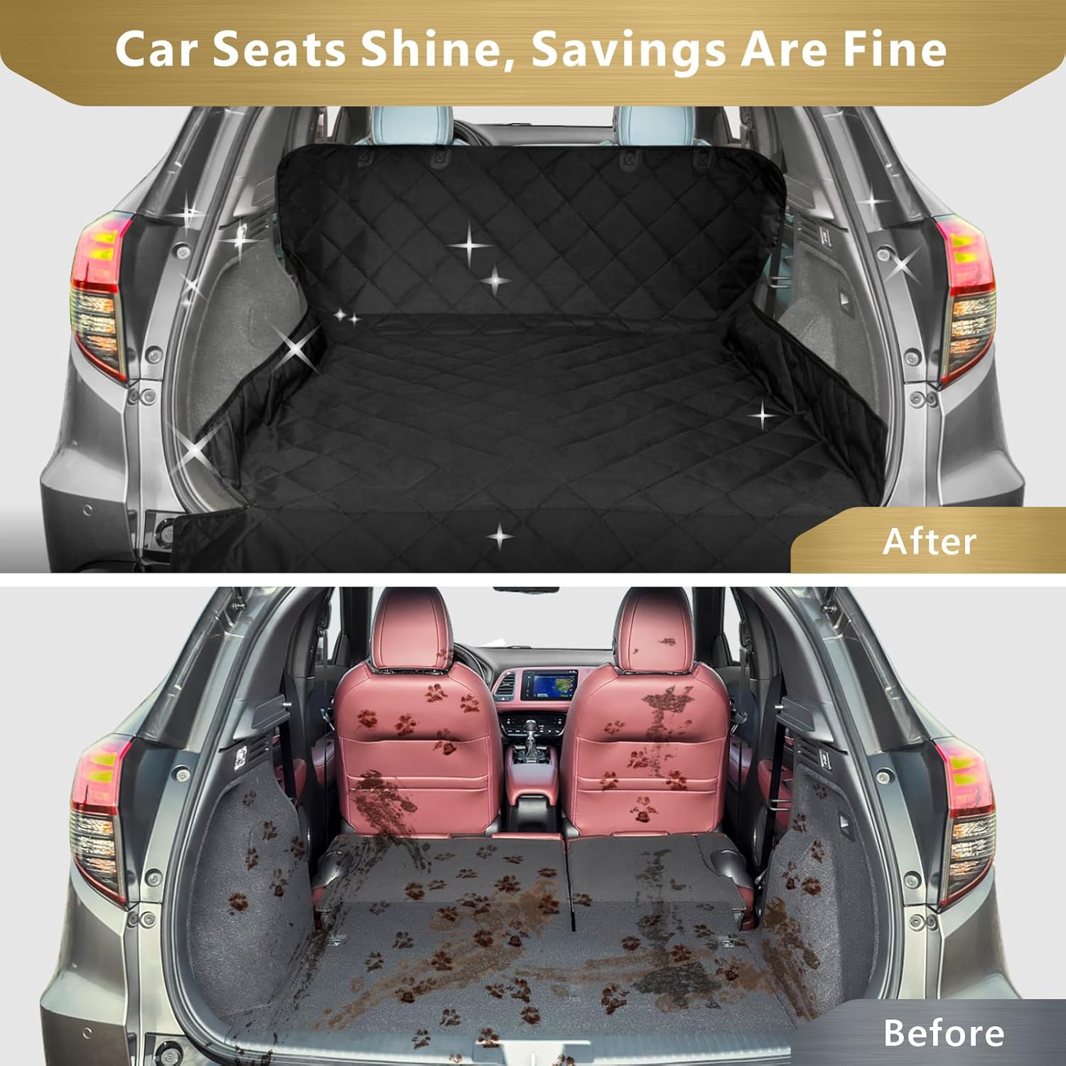 - Water Resistant Cargo Liner: 4 water-resistant layers quilted, WATER RESISTANT and protects your car seat from pet dander, hair, spills, odors, mud, and water; Easy to clean just by wiping away dirt or vacuuming, washable. Tips: If there's a pee accident, please clean immediately.