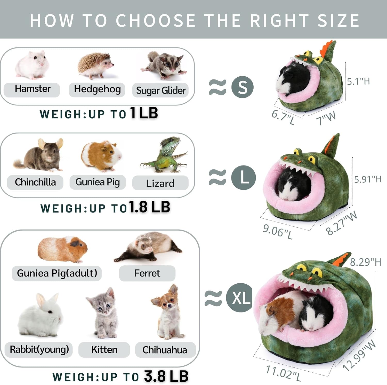 JanYoo Hedgehog Rat Bed Guinea Pig House Hamster Supplies Chinchilla Cage Ferret Rat Gerbil(S,Crocodile)