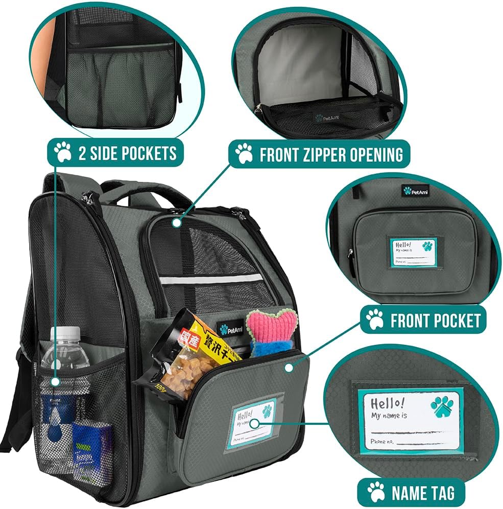 PetAmi Dog Backpack Carrier for Small Large Cat, Pet, Puppy, Ventilated Pet Hiking Backpack Travel Bag, Airline Approved Cat Backpack Carrier, Camping Biking Dog Bag Up to 18lbs Pet, Dark Grey
