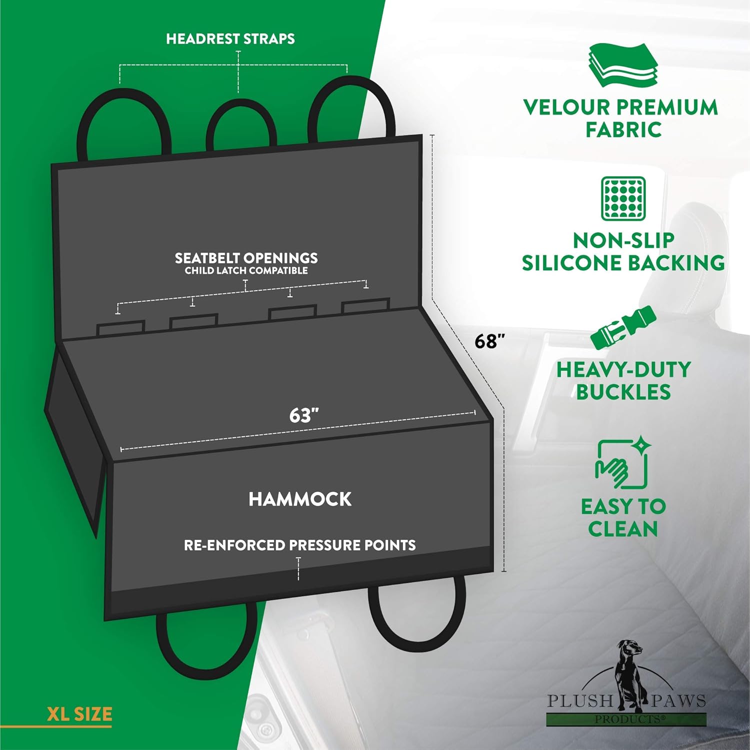 Plush Paws Products Velvet Rear Car Seat Protector w/Hammock | Washable & Waterproof Back Seat Dog Cover for Car, Truck, & SUV | Nonslip, Tear Resistant Pet Seat Cover | X-Large Desert Sand