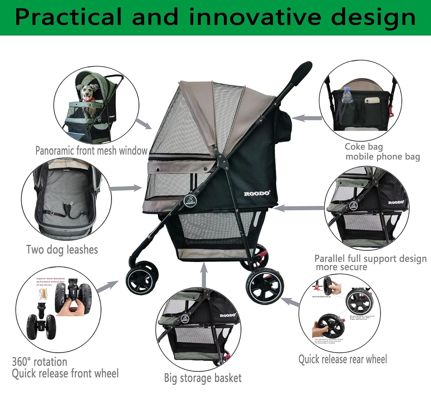 - ROODO Escort 3 Wheel Pet Stroller,have been upgraded front wheel and rear wheels can be quickly installed and removed without tools,The installation of the front and rear wheels will be easier and fasterใ