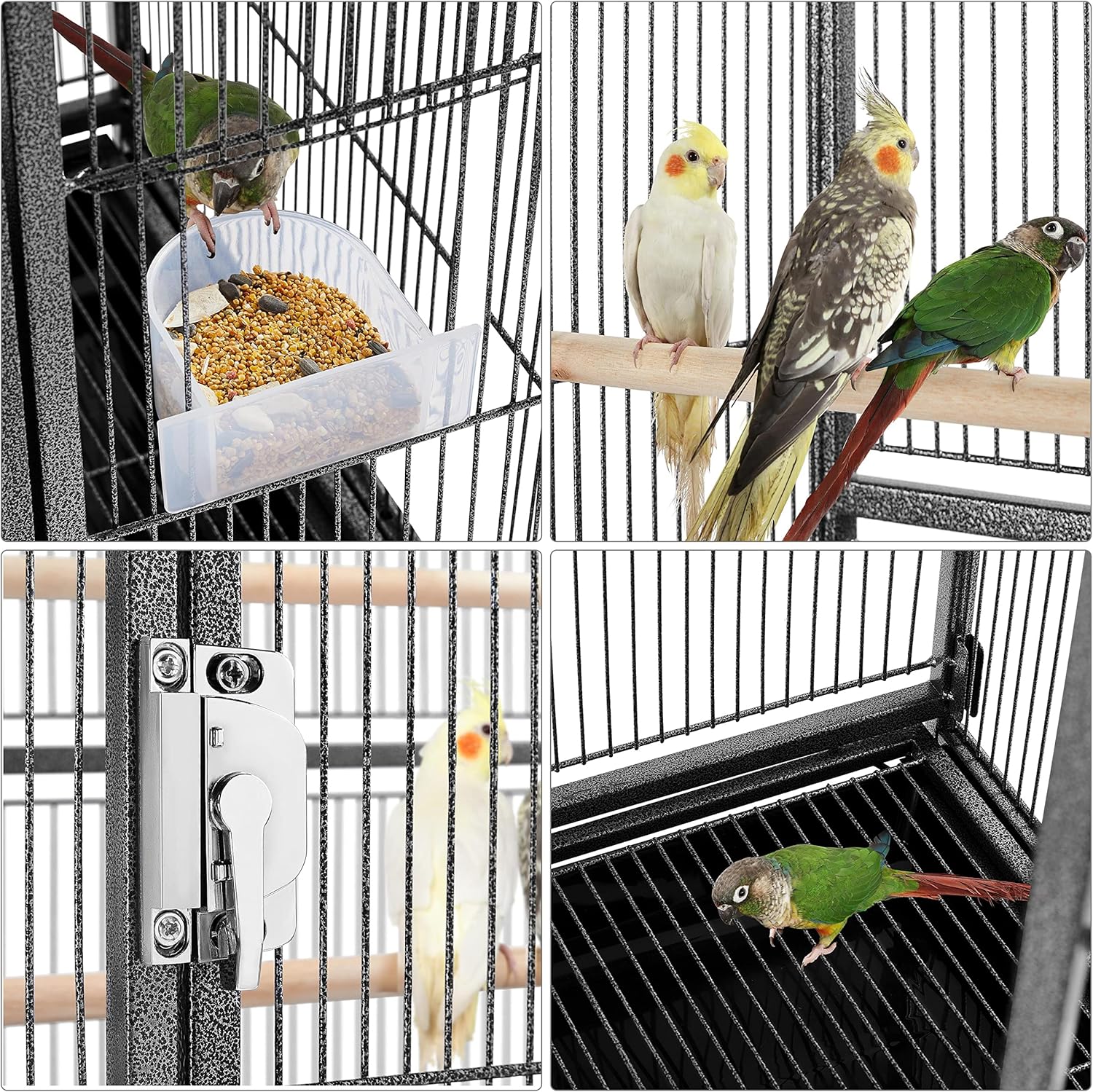 - Safe and Secure: 0.4″ bar spacing is suitable and safe for small/medium birds or small animals to use. The front door and feeder doors are all secured with locks, preventing your smart little pets from escaping when you are not around
