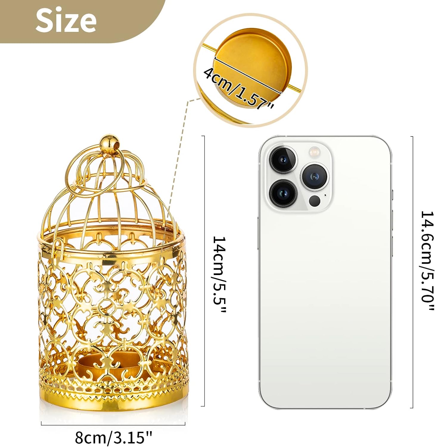 6 Pcs Small Metal Tealight Hanging Birdcage Lantern, Vintage Decorative Centerpieces of Wedding, Party, Gold