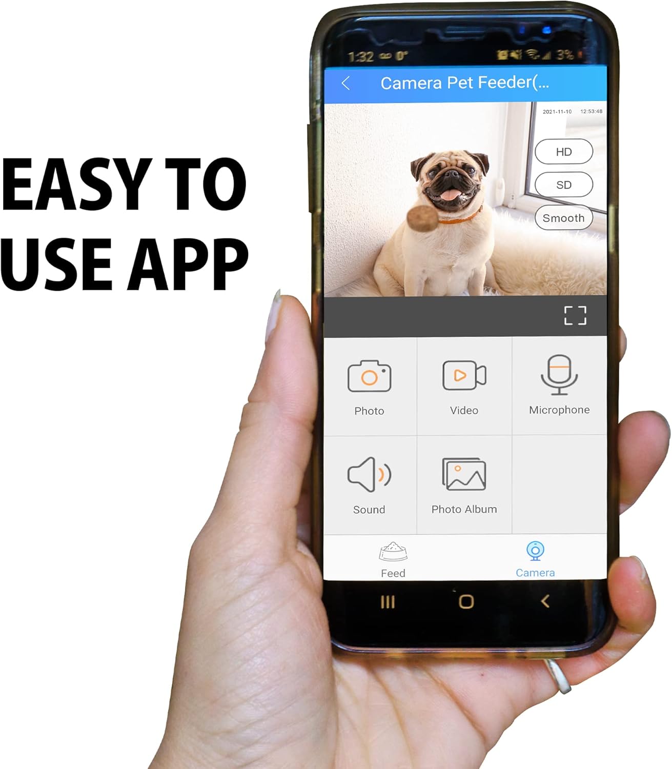 - TWO-WAY COMMUNICATION - Remind your pets of mealtime, keep them company, or calm them with the sound of your voice from a distance using the built-in microphone and speaker. This feature ensures that your pets feel connected and comforted, even when you're away.