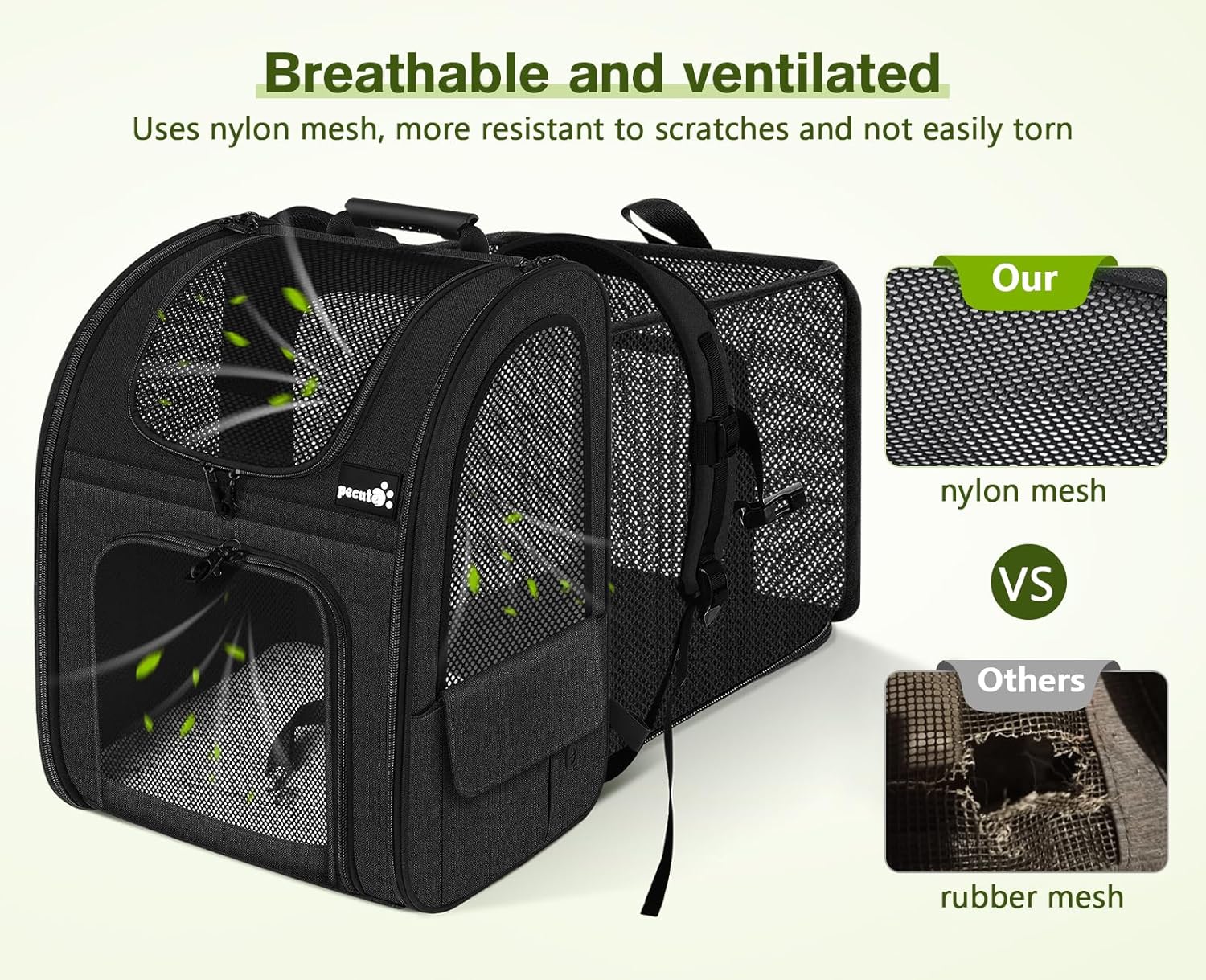 Pecute Cat Carrier Backpacks, Expandable Cat Backpack with Breathable Mesh, Pet Carrier Backpack for Cats Small Dogs Puppies Up to 18 Lbs, Dog Carrier Backpack Great for Travel Hiking Camping Outdoor
