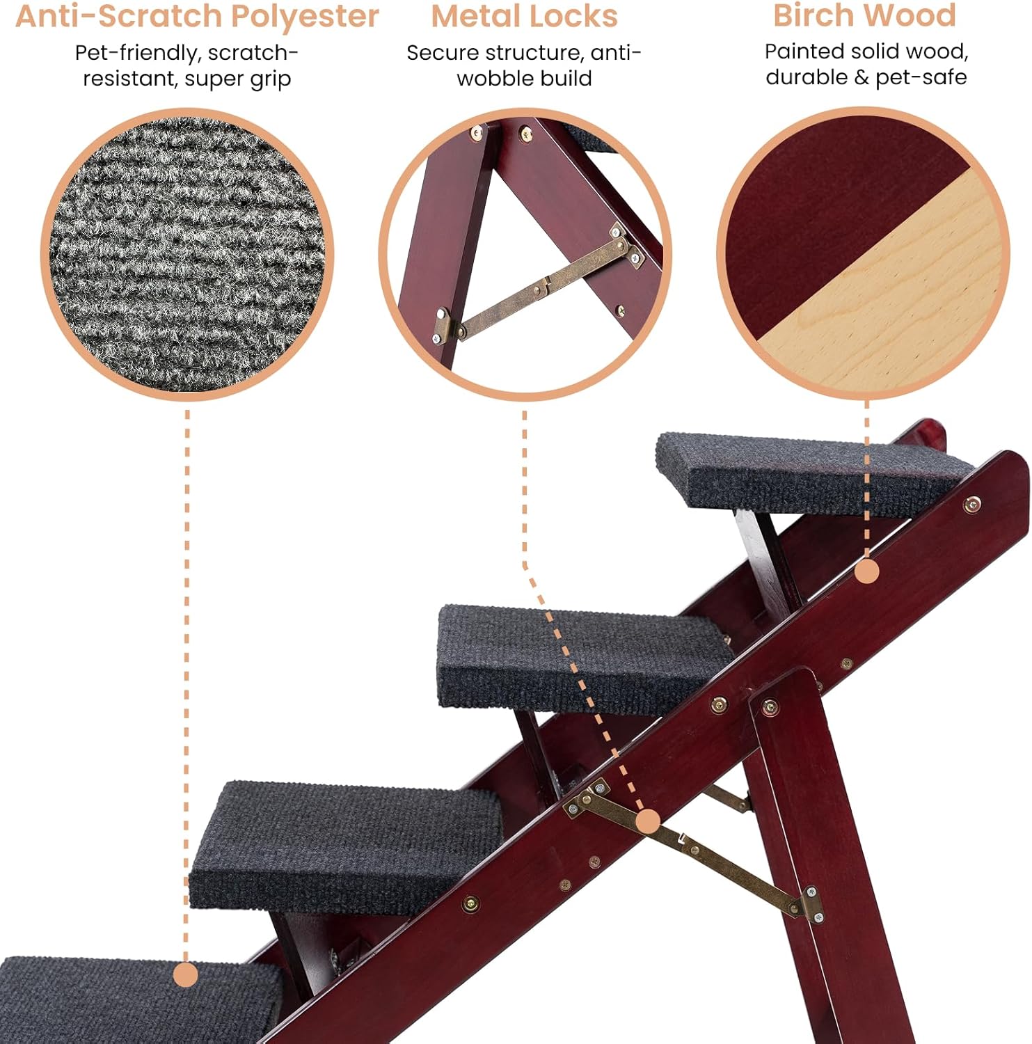 - 3. Built for Safety and Comfort Crafted from solid birch wood with anti-slip polyester and metal locks. No wobbling, no gaps—just a secure and stable step every time.