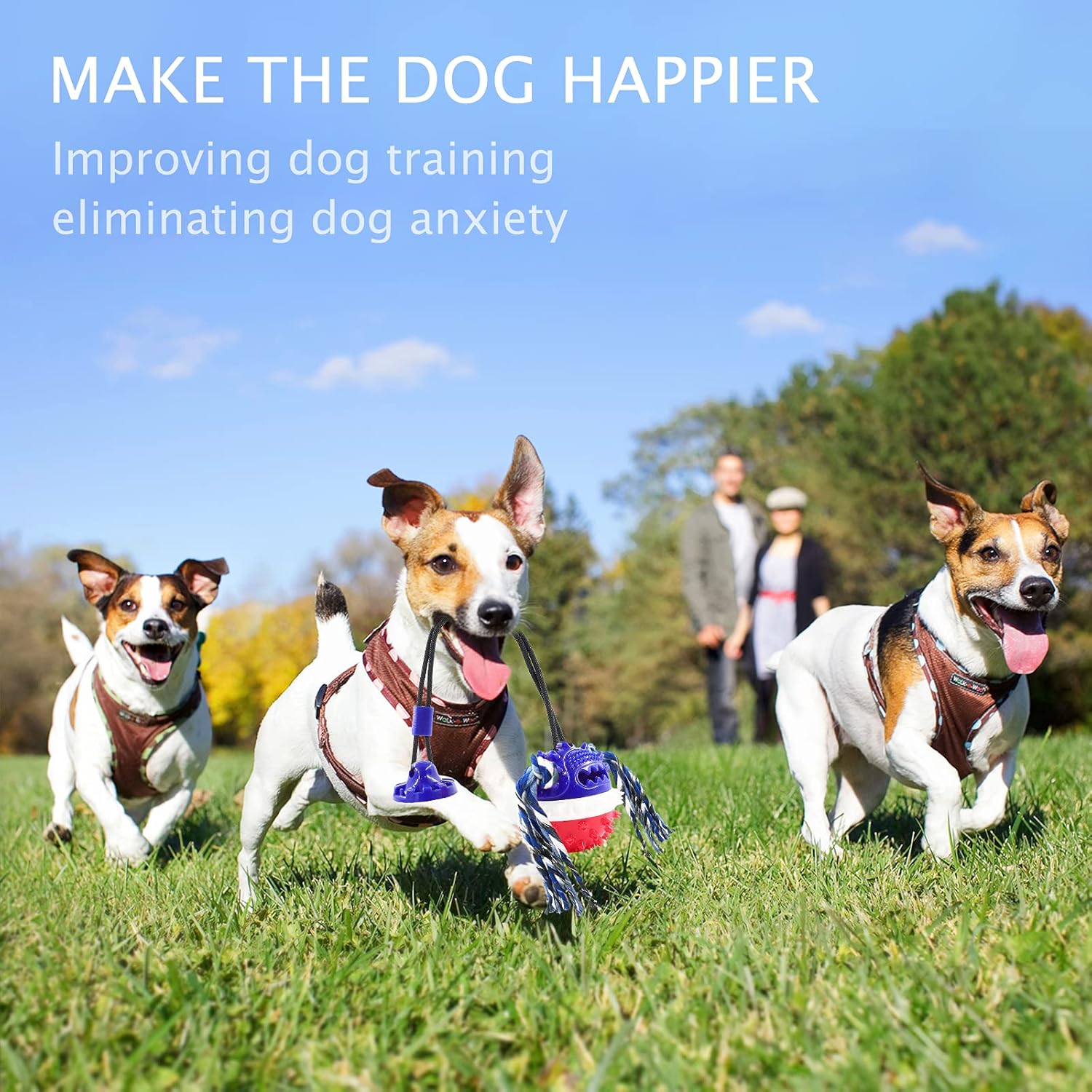 - 【MULTI FUNCTIONAL INTERACTIVE DOG TOYS】The indestructible dog toys with sucker can bring happiness to pets. When the ball is chewed, the small dog toys will make a sound to attract the dog's interest and effectively increase the interactive taste. Chewing helps to relieve boredom and prevent the dog's destructive behavior.