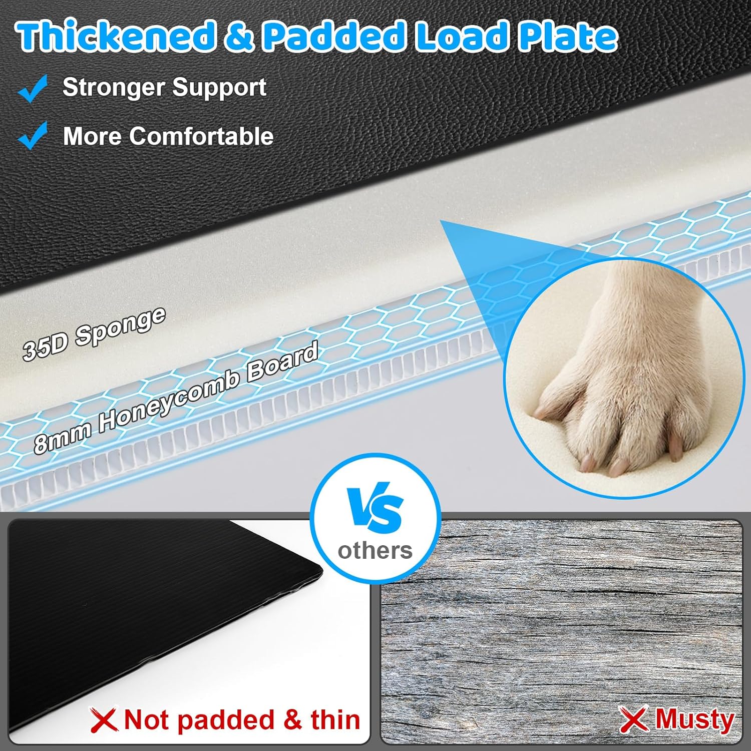 - Ultimate Comfort: The padded hard bottom is built in 7-layer protection. The hard plate is covered with a layer of 35D sponge to enhance comfort, and held in place by premium non-woven fabric, so it's easy to remove for easy cleaning of the dog car seat cover. Plus, the thickened PP hollow board plate is more durable than others' wood base