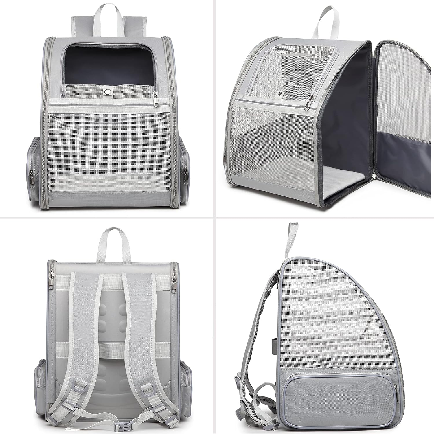 Texsens Pet Backpack Carrier for Small Cats Dogs | Ventilated Design, Safety Straps, Buckle Support, Collapsible | Designed for Travel, Hiking & Outdoor Use (Light Gray)