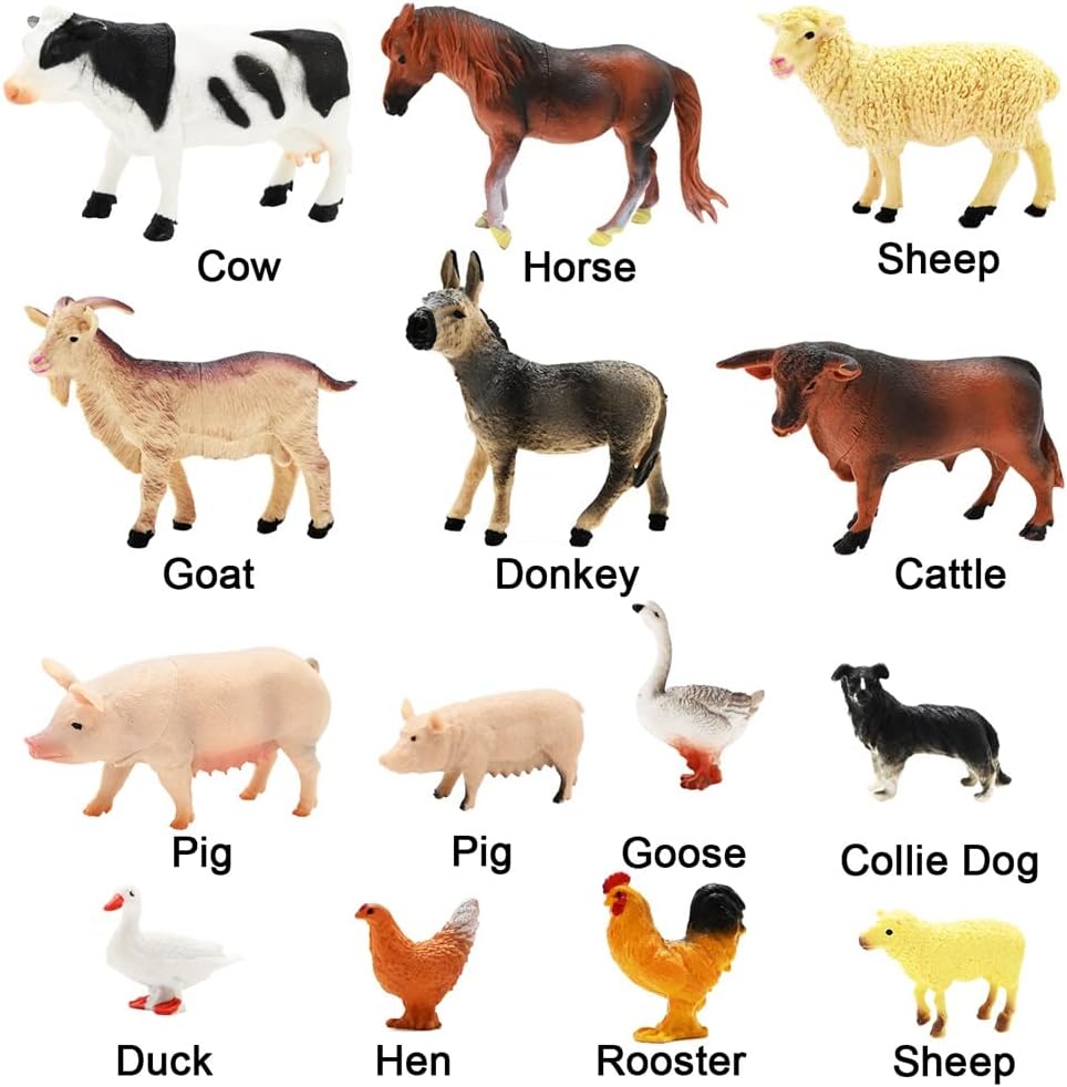 - π― LEARNING EDUCATIONAL TOY: They're also the great pretend play props, enhancing animals vocabulary, language skills, creative thinking and active cognitive learning through imaginative play. Realistic detailed farm animals are easy for toddler to distinguish, it's the good learning toys. Also this farm toys can also make away your kids from electronics which can protect their eyesight.