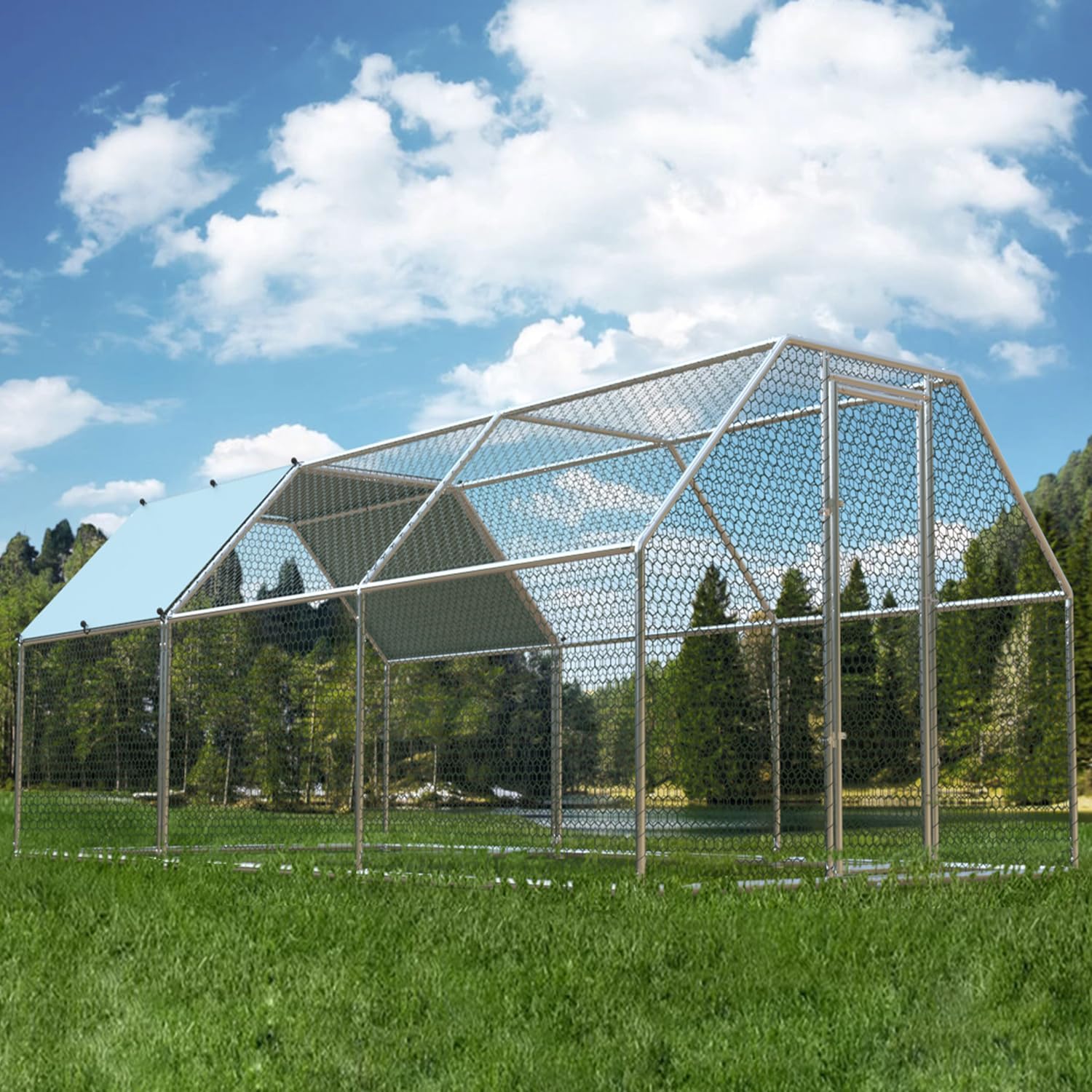4ever2buy 1.26’’ Large Metal Chicken Coop Run Walk in, Chicken Pen for Chickens, Outdoor Chicken Runs Coops, Flat Roofed Chicken Runs for Yard with Anti-Ultraviolet Cover (9.2’L x18.7’Wx 6.4’H)