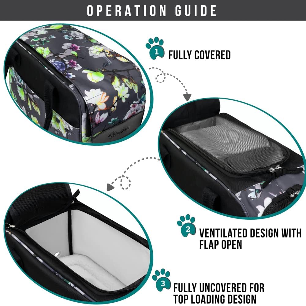 PetAmi Dog Purse Carrier for Small Dogs, Airline Approved Soft Sided Pet Carrier with Pockets, Ventilated Dog Carrying Bag for Puppy Cat, Dog Travel Supplies Bag, Sherpa Bed, Max 12 lbs, Floral Gray