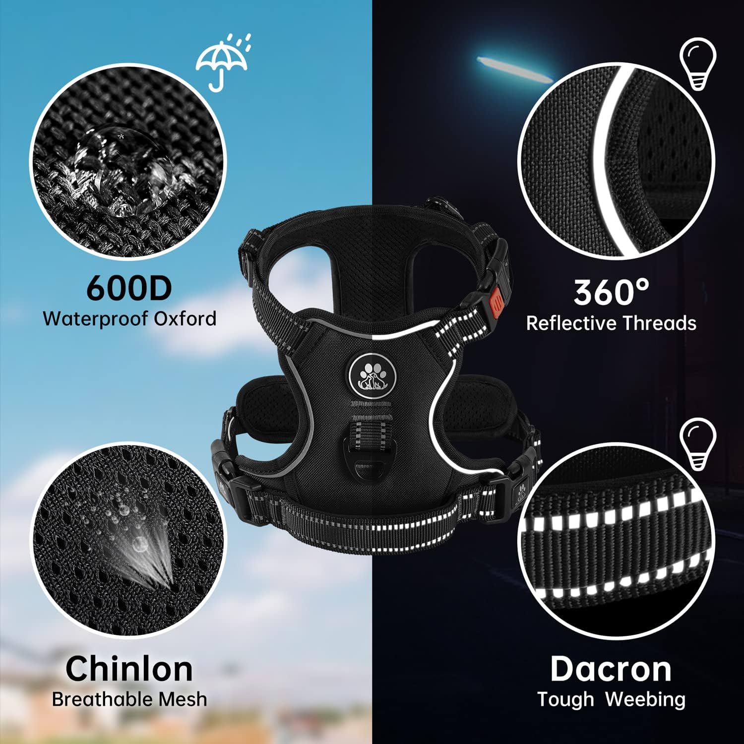 - 【SELECTED ACCESSORIES】 Our no pull harness includes 1 professional dog leash & 1 retractable seatbelt & 1 storage strap, which makes walking dogs a pleasure. We provide several size harnesses for small dogs to large dogs, more details please refer to the sizing chart