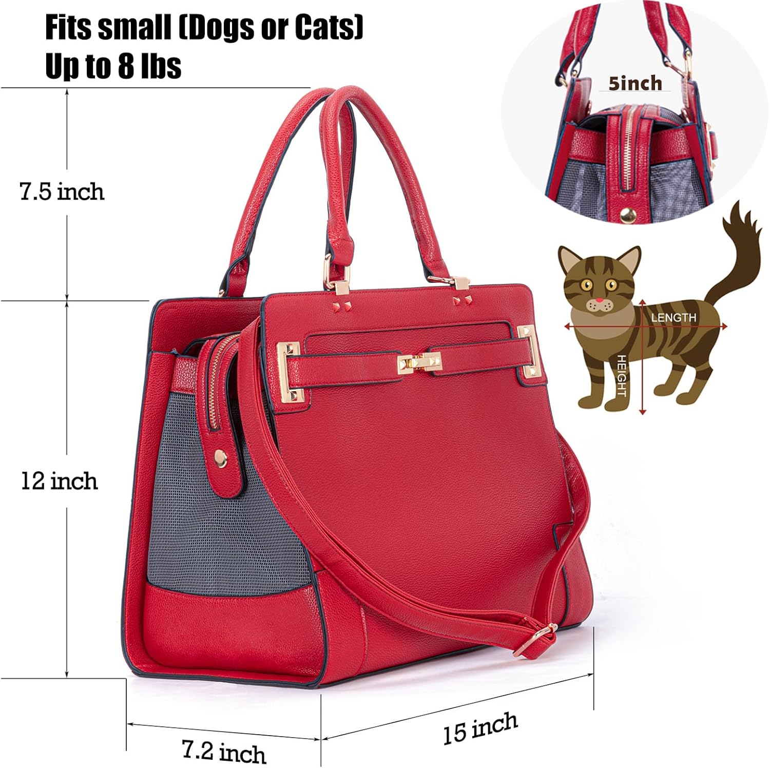 Fashion Pet Carrier Dog Cat Carrier Purse Soft-Sided Leather Handbag Pet Tote Bag for Small Dogs Puppy and Cats TSA Airline Approved (Red)