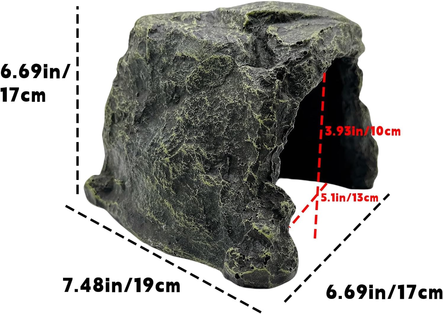 - 【Large Hideout】With only one entrance, the reptile hideout allows reptiles to better conceal themselves, satisfying their natural hiding instincts and making them feel safe and relaxed. The dimensions of the rock hideout are 7.4"x6.6"x4.7" inches, with the internal cave measuring 5.1"x5.9"x3.9" inches,not suitable for large turtles, providing a spacious and secure area for reptiles to sleep, rest, play, or breed.