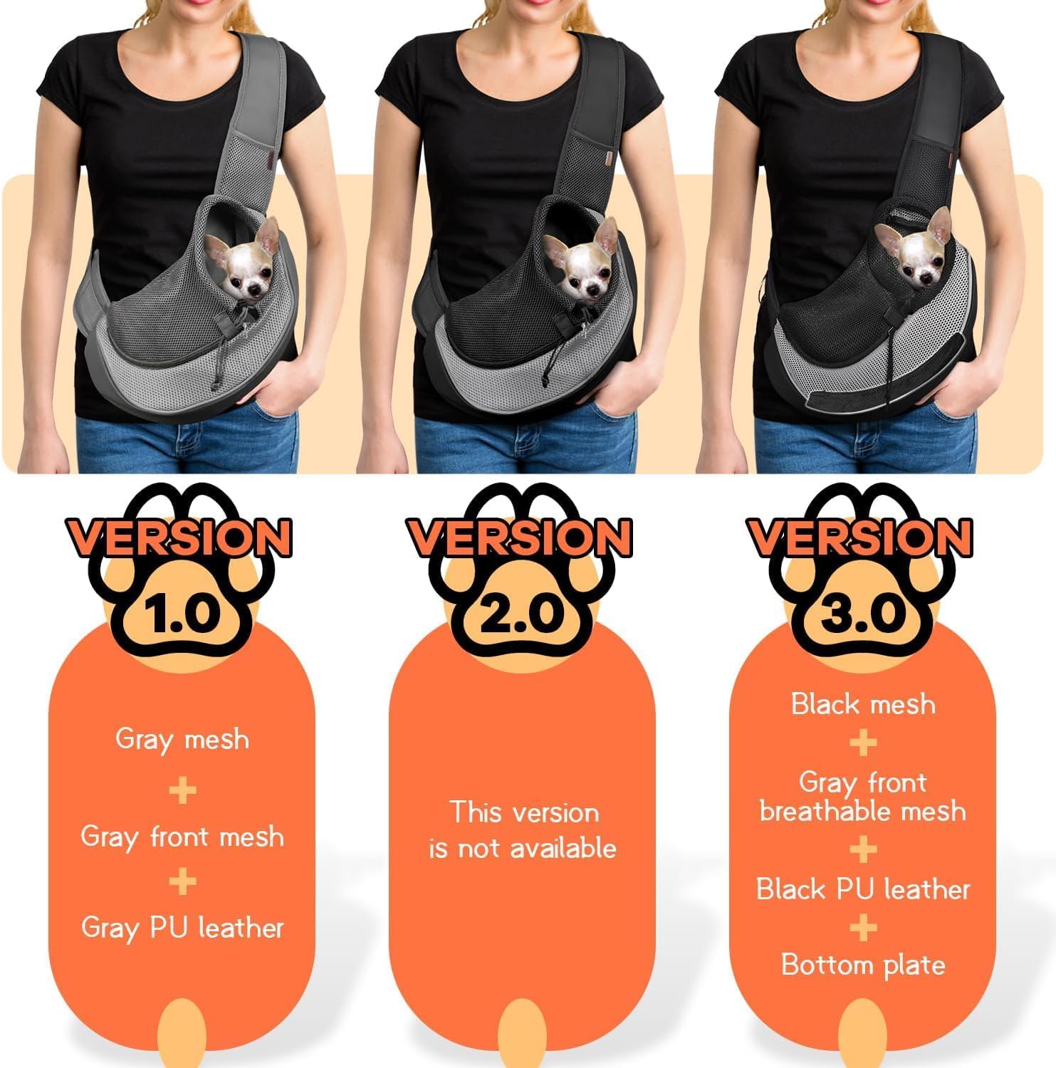 YUDODO Pet Sling Carrier for Small Dogs & Cats – Hands-Free Puppy Carrier with Safety Hook, Large Zipper Pocket, Soft Breathable Mesh, Adjustable Strap & Reflective Strip (Gray 3.0 M)