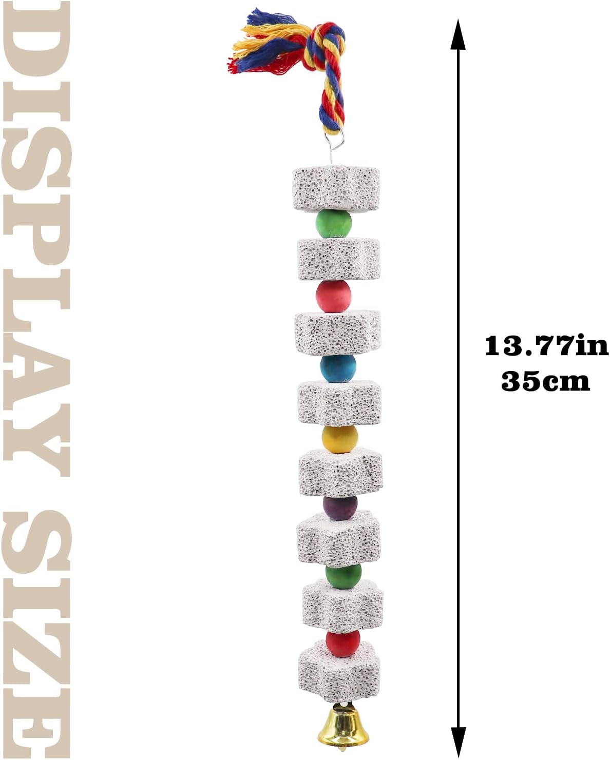 - 【Perfect Design】: The parakeet stone toy is polished into a star shape, which is both beautiful and more convenient for parrots to chew. The transition between the grinding stones is made by colorful beads, which can attract the attention of parrots on the one hand, and decorate your pet's cage on the other. There is a bell at the bottom of the bird's chew toy, which will emit a pleasant ringing sound when the bird pecks.