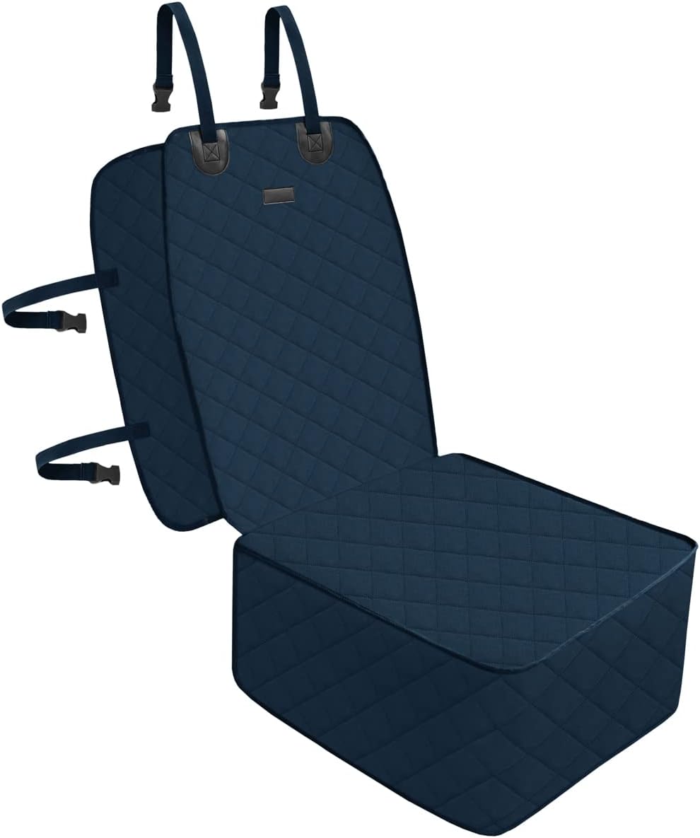 Dog Car Front Seat Cover with Side Flaps & Buckle Straps for Pet, 100% Waterproof 600D Oxford Single Seat Protector Heavy Duty Quilted Scratch Proof, Universal Size for SUV Truck, Blue