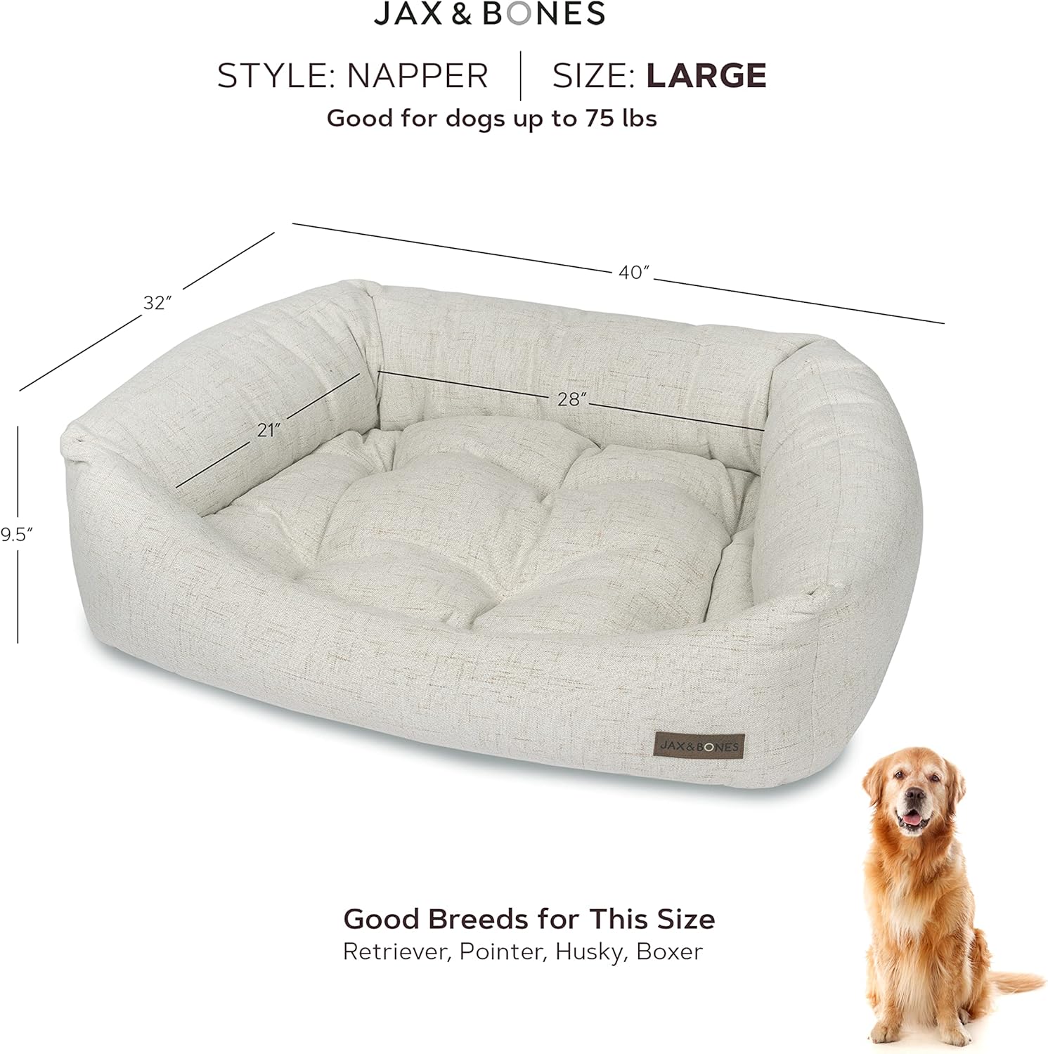 - MACHINE WASHABLE: The Jax & Bones Napper Bed is incredibly comfortable and provides hours of deep sleep. Outer bolsters unzip for easy maintenance and the center pad is removable for easy washing.