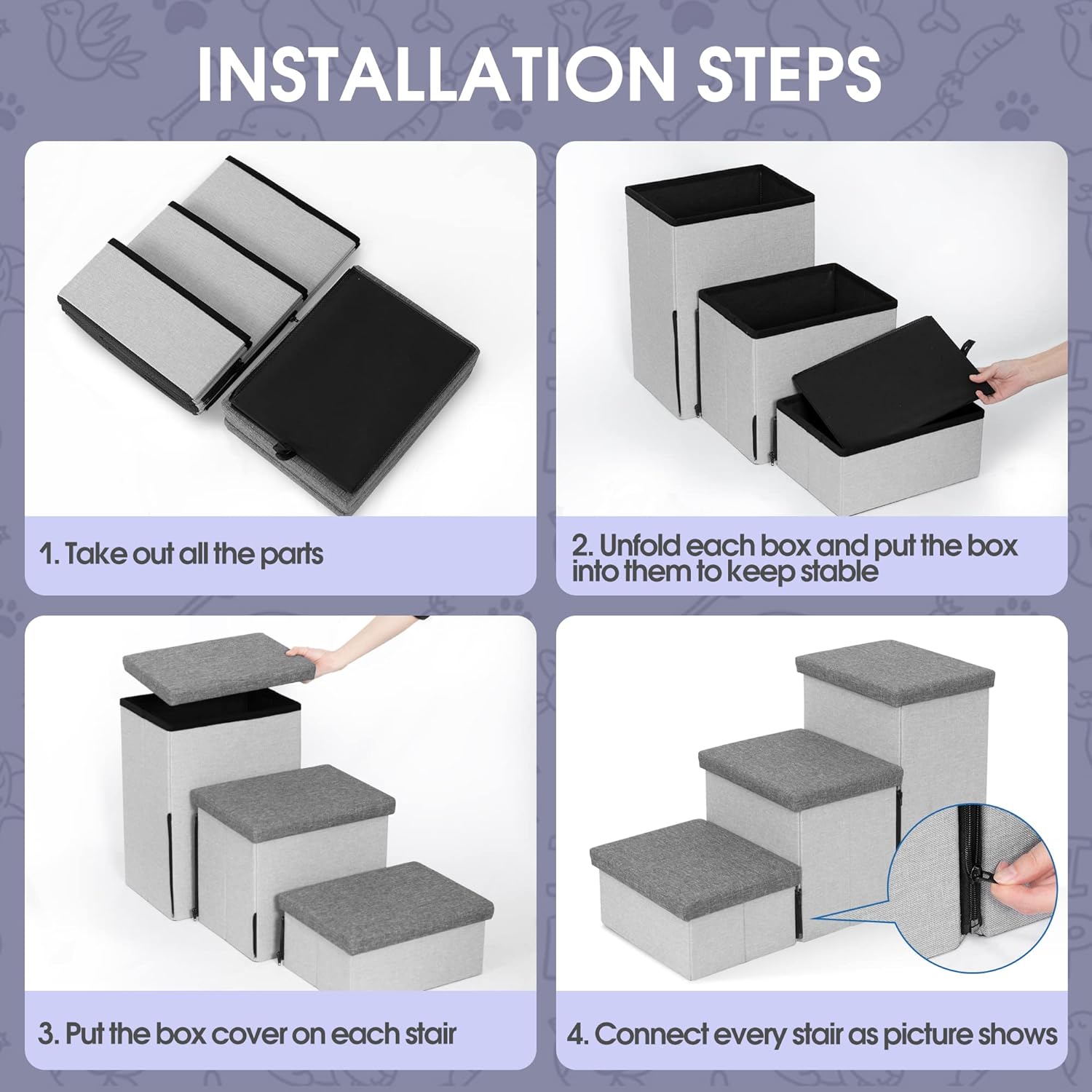 Heeyoo Dog Stairs with Storage, Foldable Dog Steps for Small Dogs, 3 Tiers Non-Slip Pet Stairs for High Beds Or Couch and Sofa, Hold up to 200 lbs Pet Cat