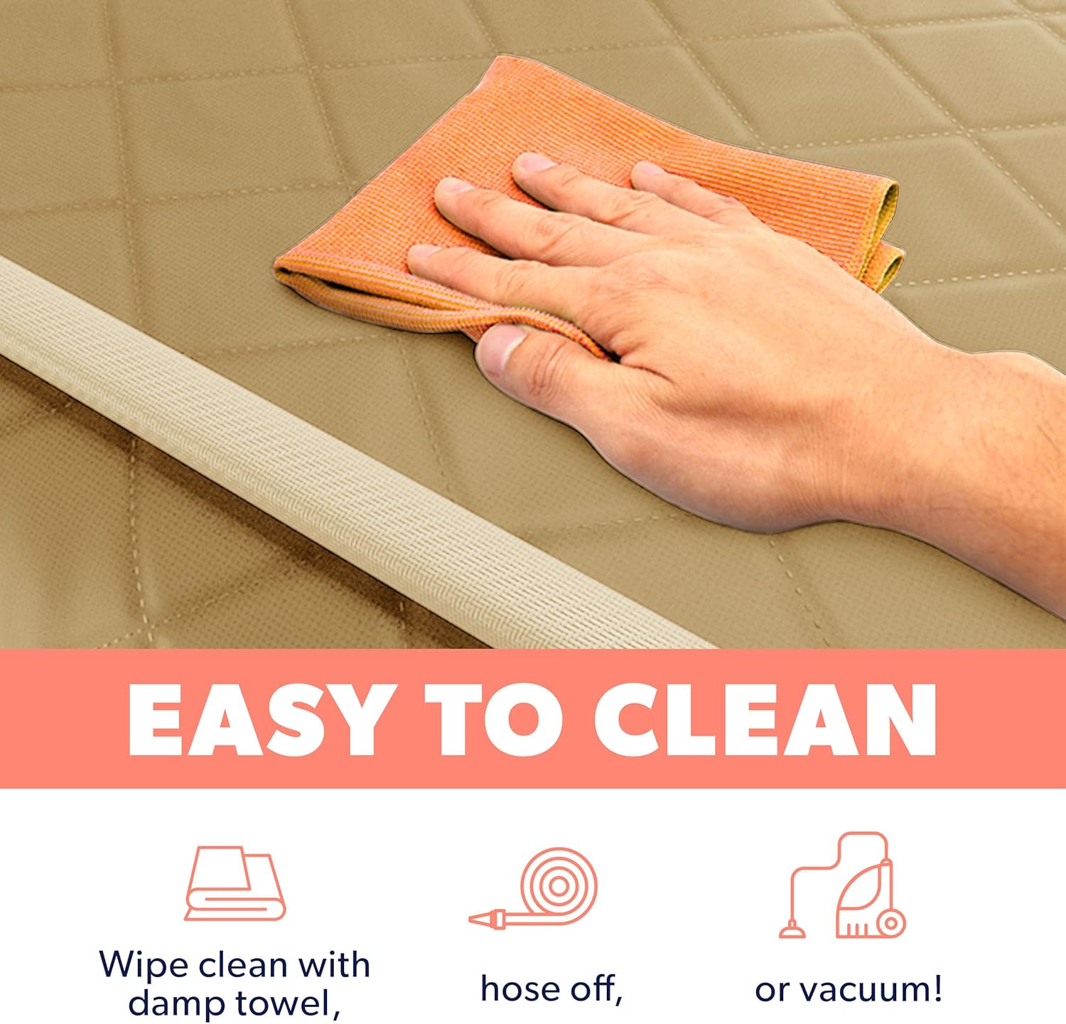 - EASY-TO-CLEAN MATERIALS รข Active Pets dog front seat cover is made exclusively from super easy to clean materials! Crafted with a top layer of premium 600D Oxford waterproof cotton and a middle layer of Oxford 210D with waterproof coating, your seats will remain clean no matter what. In case your pet has dirtied the seat cover, just wipe with a damp cloth or vacuum it and it will be new again in a minute!