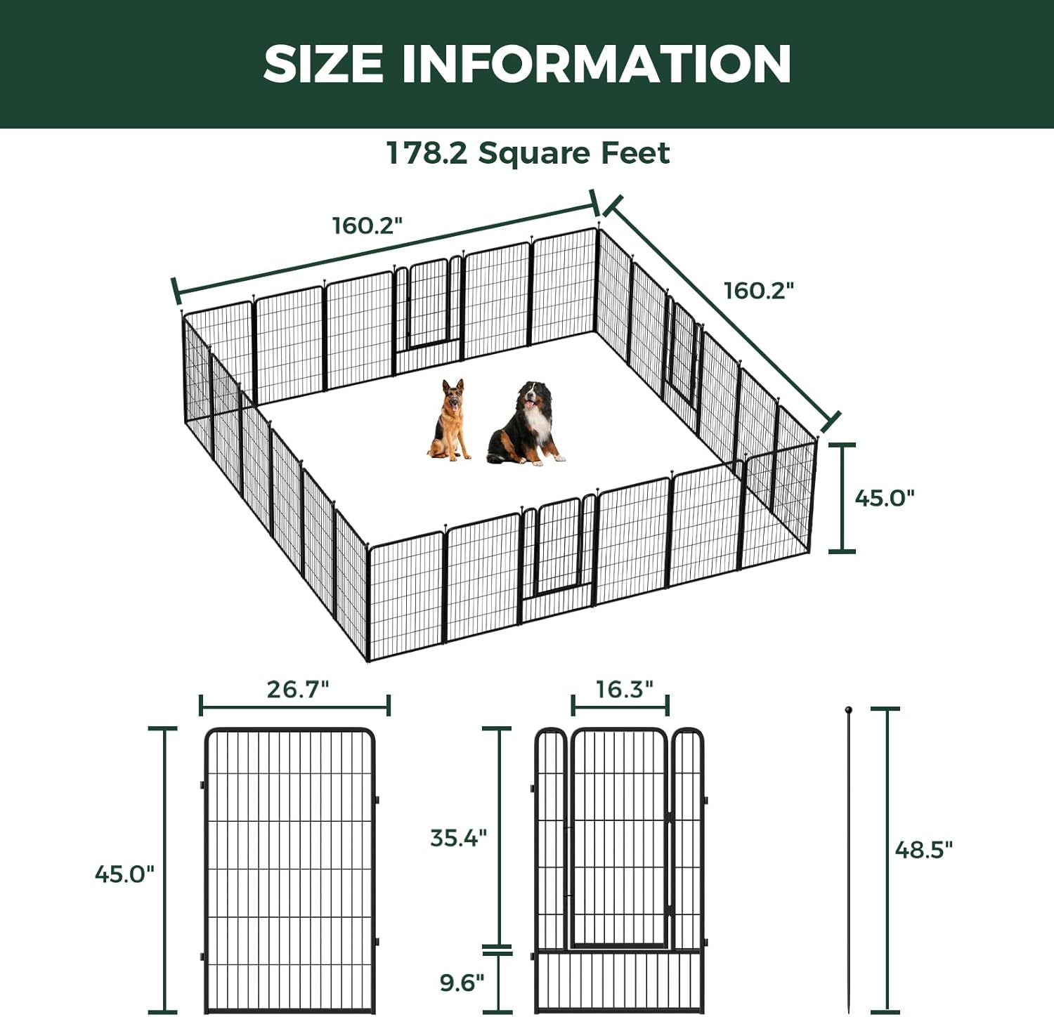 - Super easy to assemble: It won’t take you more than 5 minutes to assemble these portable dog fences as well as pack them away due to the rod-connected design. Meanwhile, panels can be added or removed freely to give you a fully flexible area and arrange the dog pen in any shape you need.