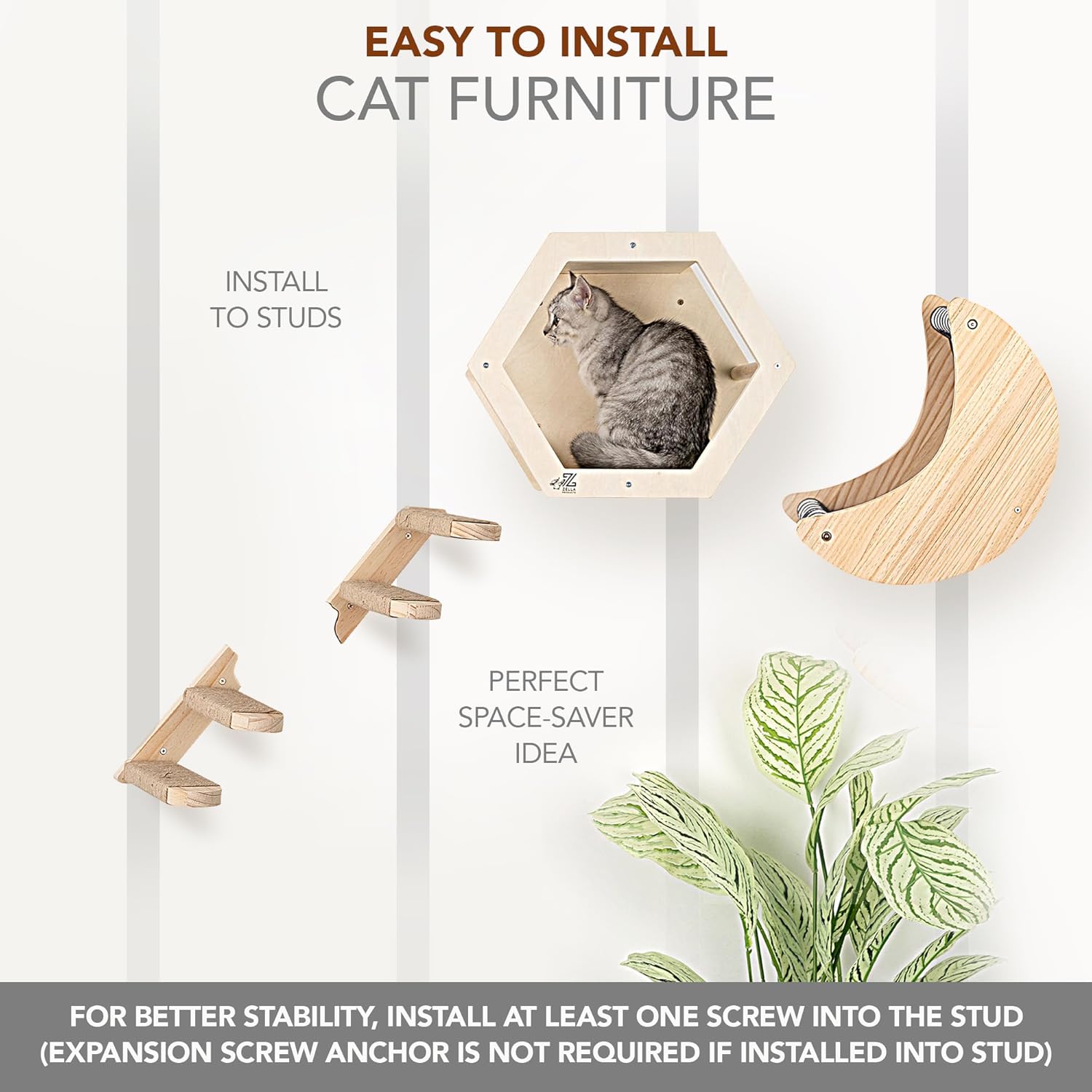 - ๐พCAT FURNITURE: Elevate your pet's comfort with our Cat Wall Hammock, Hexagon House, and Cat Wall Steps; easily hang them on your wall to provide the ideal sleeping and lounging spots, keeping your floors and furniture clean.