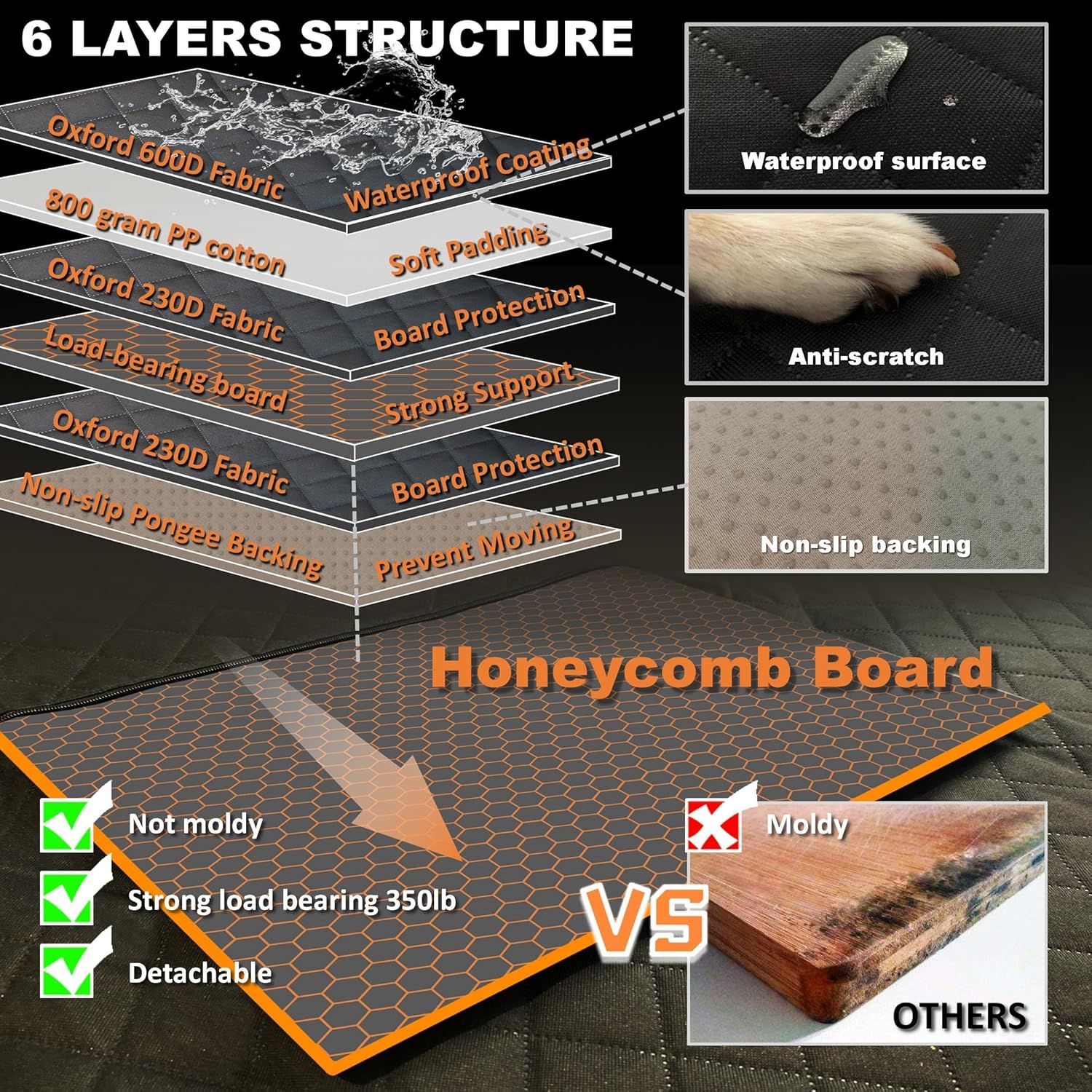 - 【Transform Back Seat Into A Large Bed】The dog car seat cover for back seat can transform the entire space in the back seat into a large and comfortable resting space for dogs by a expanded hard bottom, providing your pets with extra comfort during car travel or camping. The dog seat cover for back seat behaves like a barrier to keep your dogs away from the seat and door, which is a good protector to prevent bitting or scrathing. The strong support base of car seat covers for dogs prevents dogs falls during the drive.