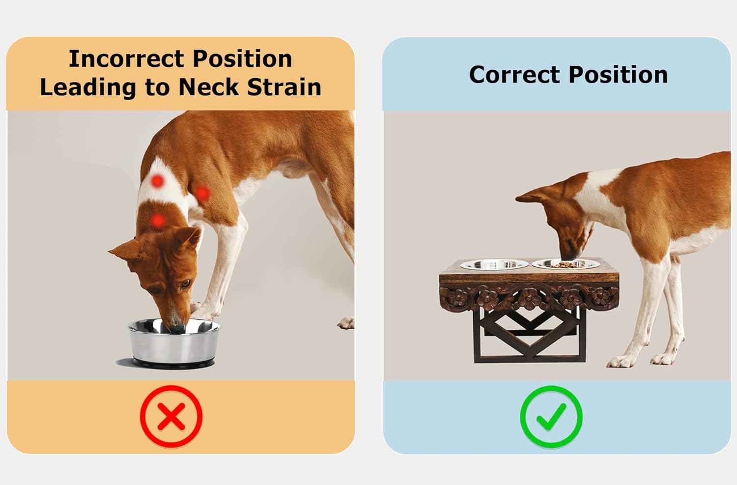 - π GREAT FOR AGING PETS: The adjustable heights help reduces neck and joint strain. This sturdy pet bowl feeder is elevated for optimum use. The elevation is great for aging dogs and cats with arthritis or mobility issues. This adjustable pet feeder stand will make mealtime more comfortable for your furry friend.