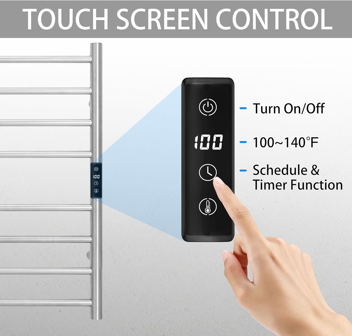 - [TOUGH SCREEN CONTROL]: Manually to turn on/off anytime. Countdown Timer function from 1 hour to 8 hours. Temperature control from 100Β°F to 140Β°F.