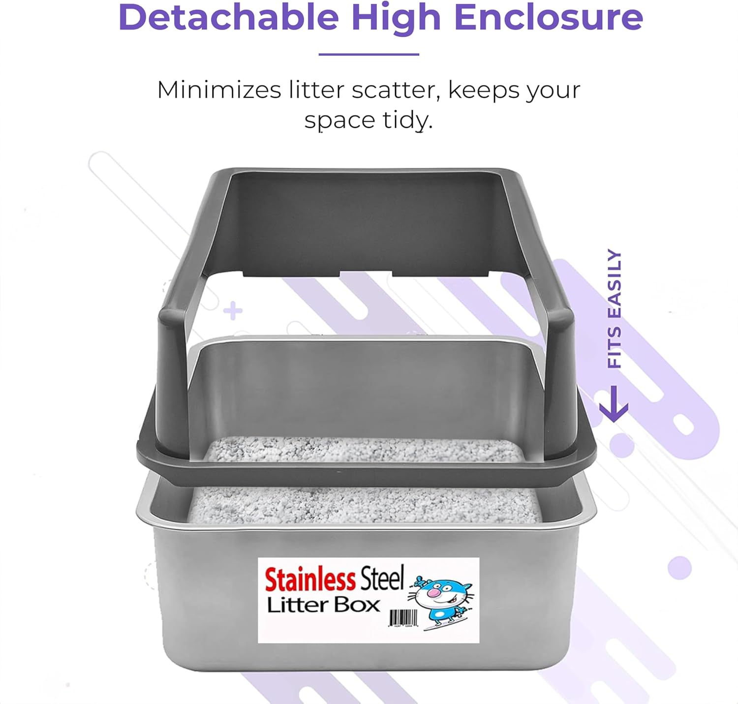 - High Sides for Less Mess: This high sided metal litter box keeps litter from scattering, with a total height of 6 inches and a 20 x 14.2 x 6 In stainless steel pan to contain messes