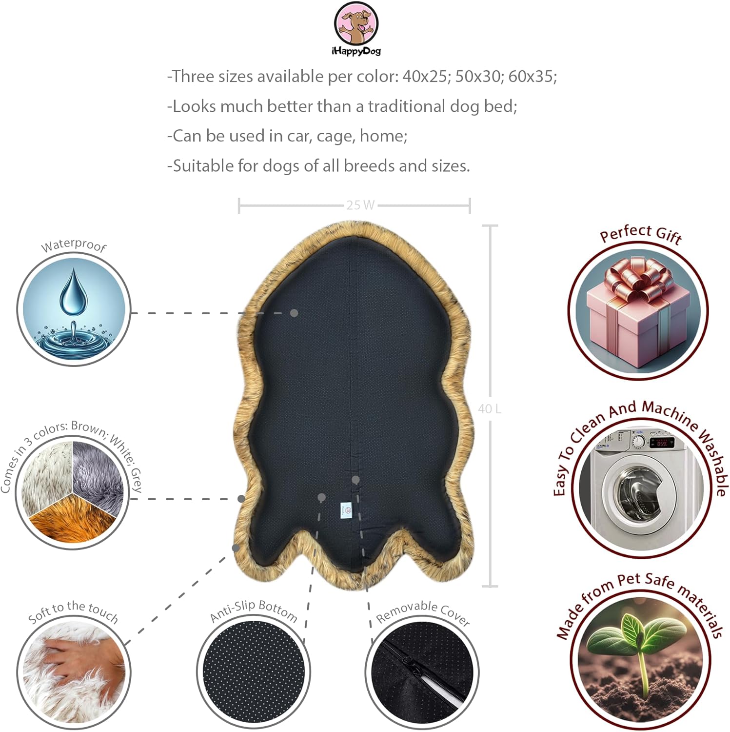 - GET THE RIGHT FIT: Whether you have a small pup or a large dog, our rug memory fur dog bed has you covered. Itโs available in 3 sizes (Medium: 40โ L x 25โ W, Large/Extra Large: 50โ L x 30โ W, Giant: 60โ L x 35โ W) to ensure your pet gets the perfect fit