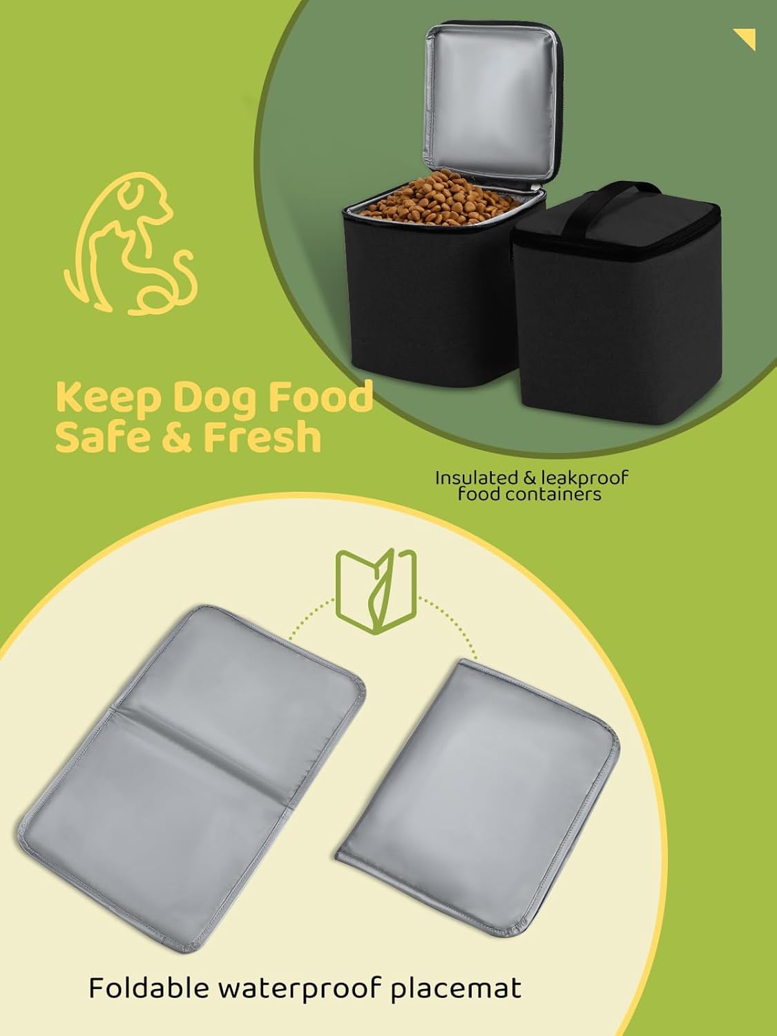 - Keep Dog Food Fresh: Two large dog food containers can hold up to a weekโs worth of food depending on the dog. And the food carriers are fully insulated and leak-proof, keeping your poochโs food/treats fresh and safe no matter where you go, on a hillside or the beach.