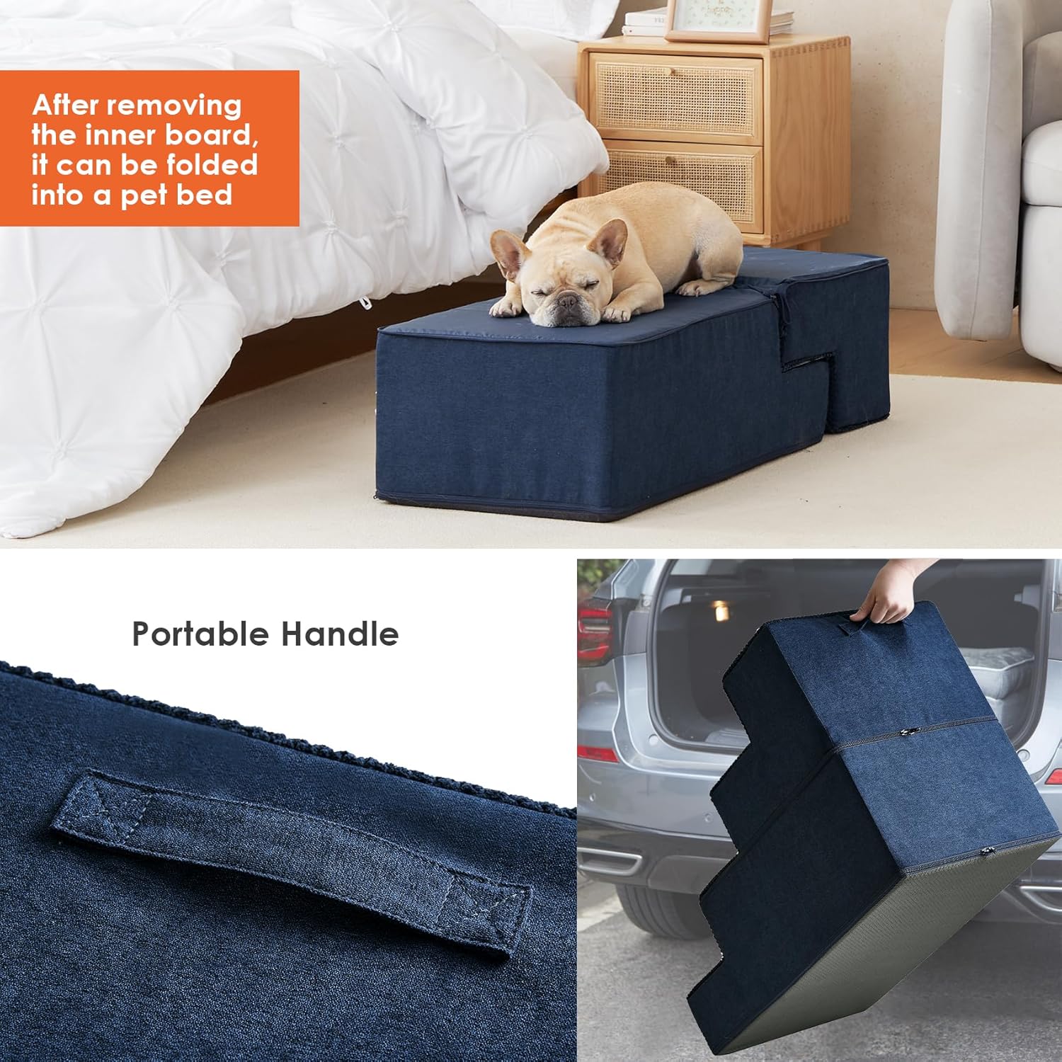 - EASY TO CLEAN - The dog step features a removable and washable cover, which can be cleaned by hand or in the washing machine. This saves you time and makes cleaning incredibly convenient.