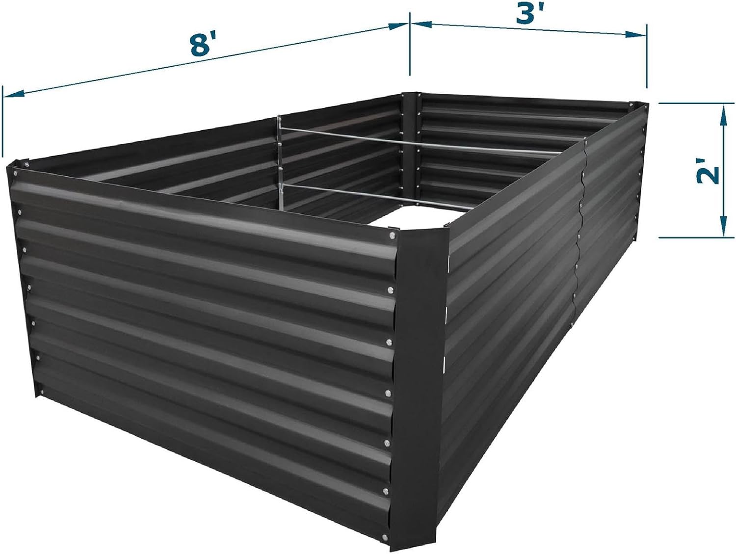8x3x2FT Metal Raised Garden Bed Kit, Galvanized Outdoor Garden Bed Planter Box for Vegetables, Flowers, Herbs, Succulents and More, Black