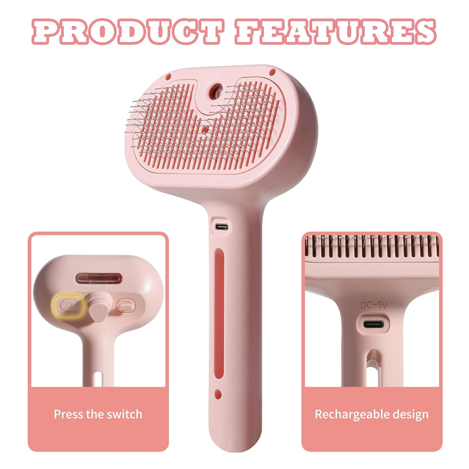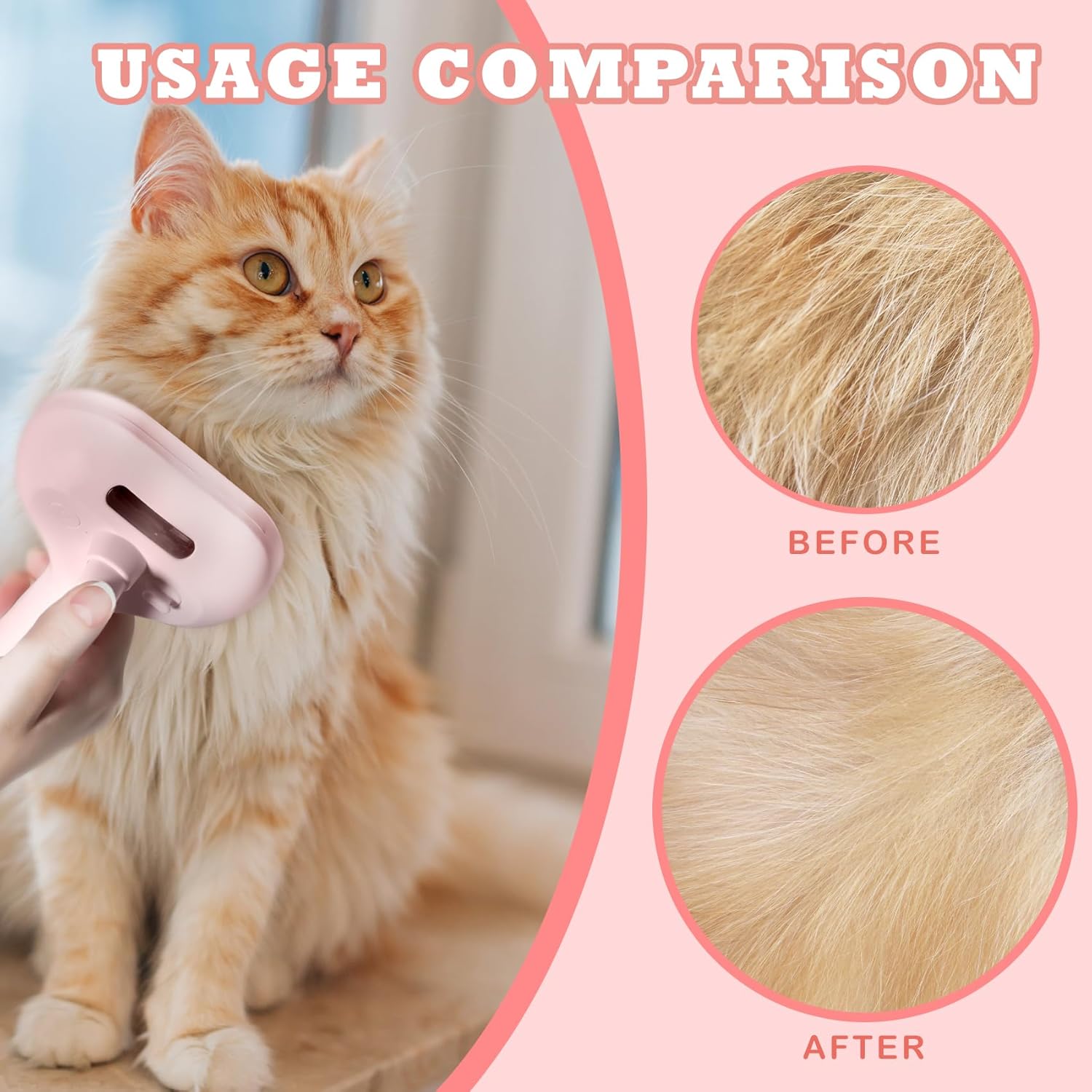 - This 2-in-1 cat hair brush is designed with a unique spray function that effectively avoids the generation of static electricity and flying hair. No more annoying hair sticking to your clothes or furniture!