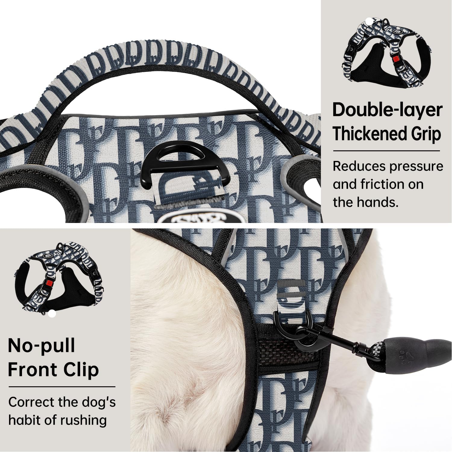 IVY&LANE No Pull Dog Harness with Leash Set, Reflective No Choke Pet Vest,Adjustable Oxford Dog Vest Harness with Easy Control Handle for Large Dogs (Vintage Blue,L)