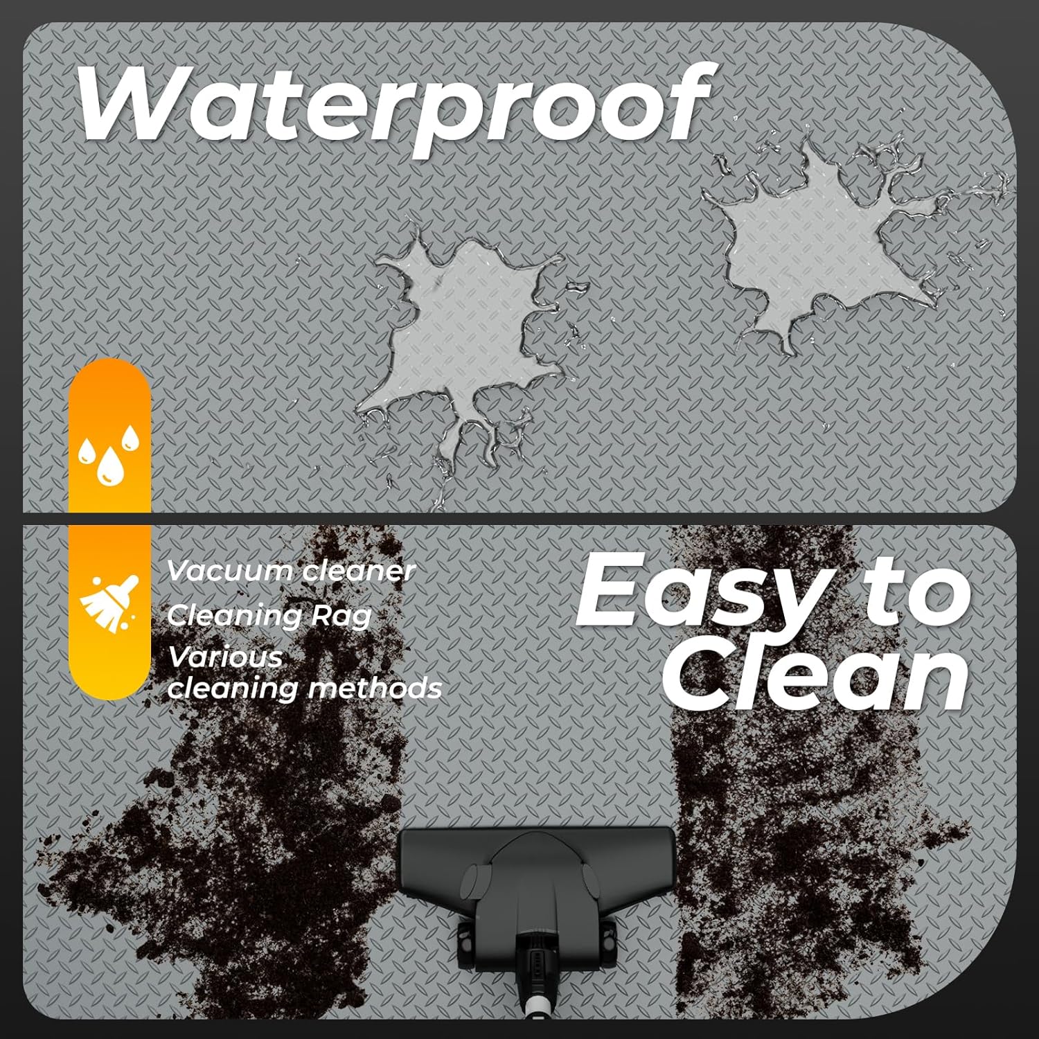 - ๐งใ Premium Slip-Resistant Diamond PlateใDiamond pattern on surface of garage car mat, special designed for anti-slip and safe in/out. Waterproof garage flooring provides excellent protection from dirty water penetration,creating a dry and clear environment