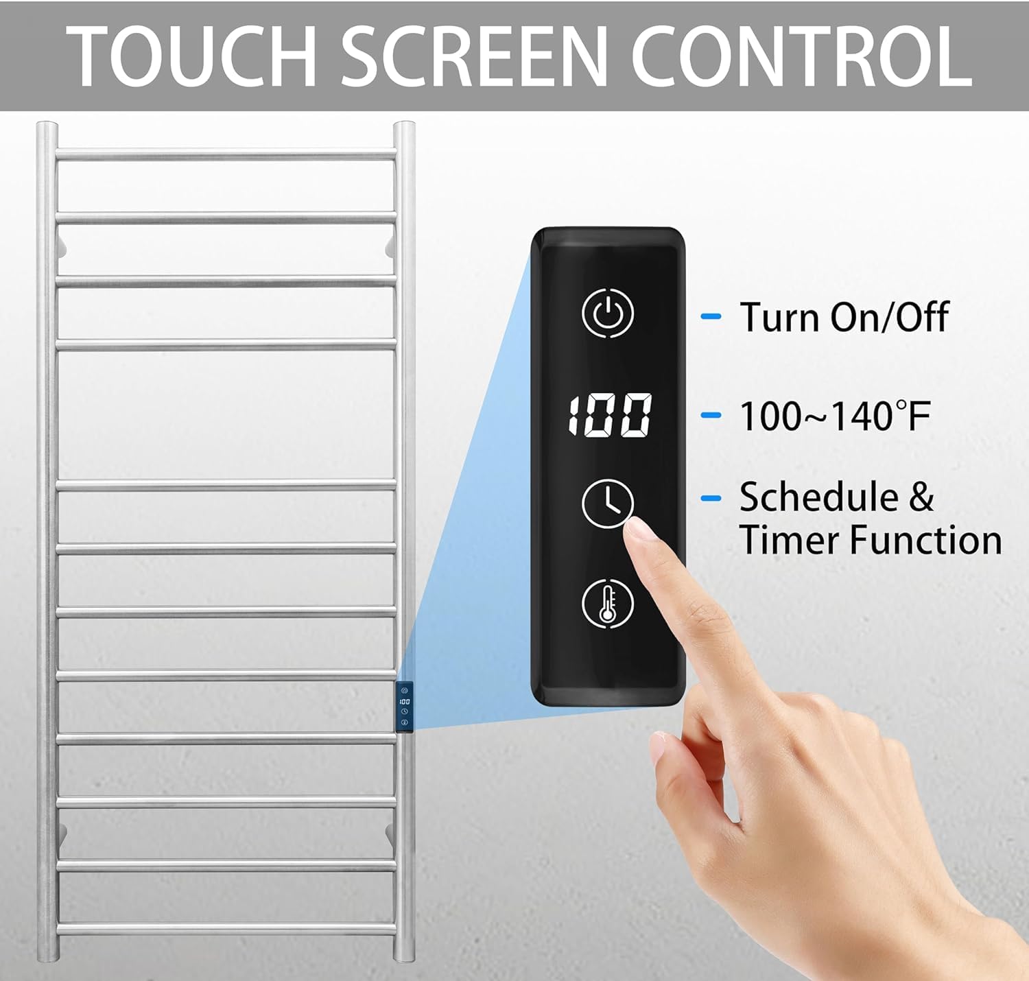 - [PREMIUM QUALITY WITH ELEGANT LOOK]: The bath towel warmer is made of durable 304 stainless steel, easy to clean and durable use. IP56 Waterproof standard and wall-mounted design maximizes your floor space.