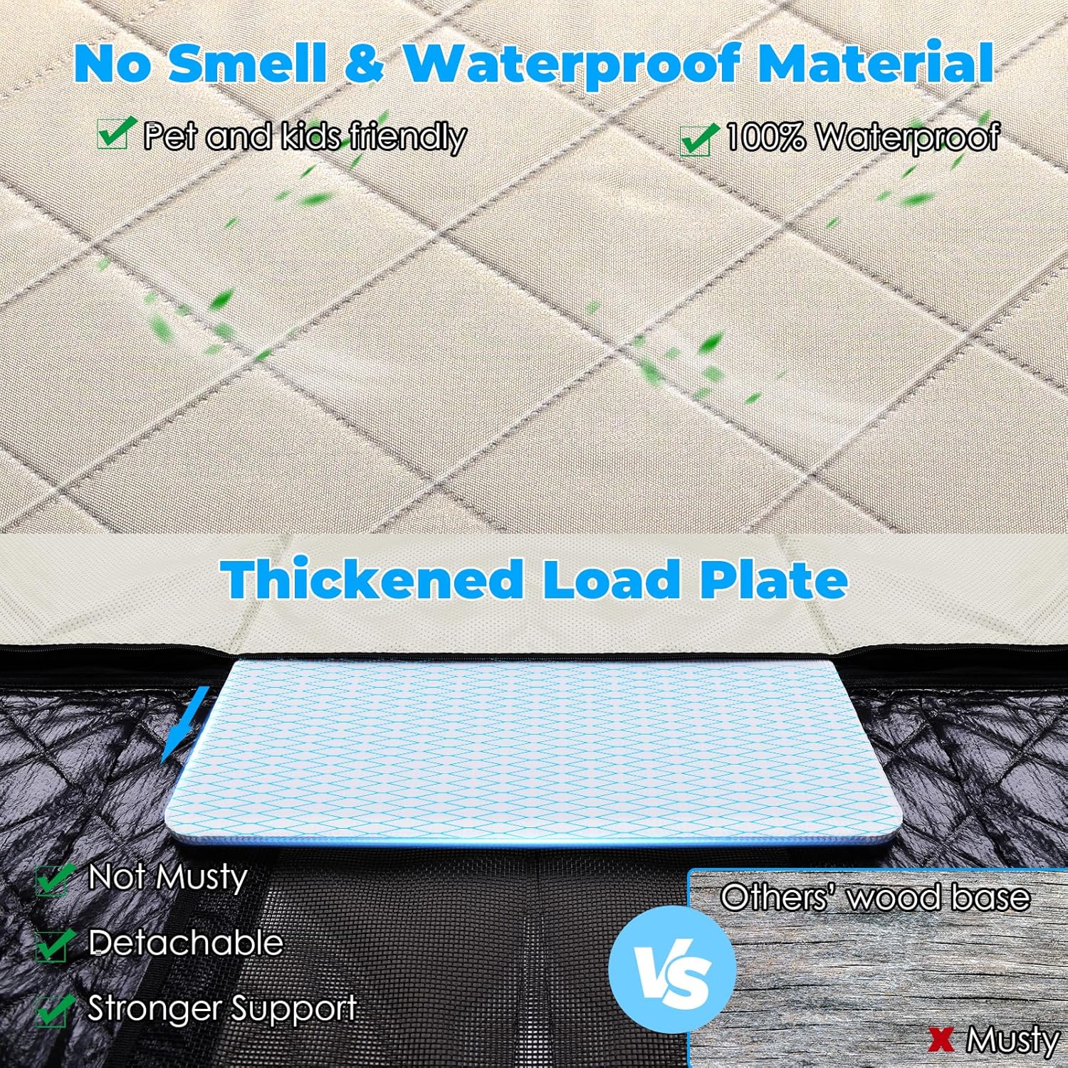 - No Smell Material: The dog car seat cover for back seat without terrible smell is friendly for pets and children. In an enclosed car space, no terrible smell is also important to keep you focused and driving safely, something that others' dog covers on the market ignore. The thickened PP hollow board plate is more durable than others' wood base
