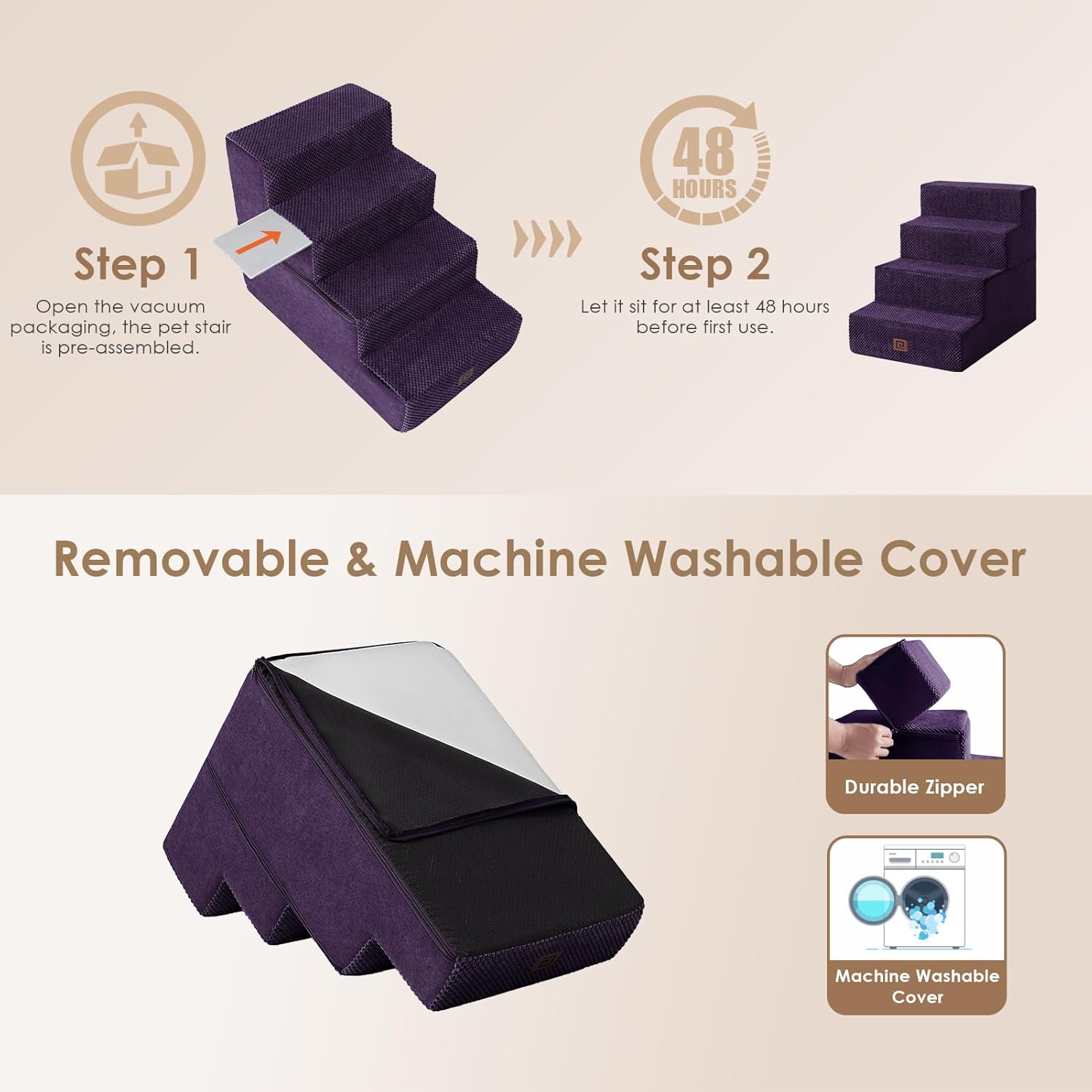 EHEYCIGA Dog Stairs for Bed 18" H, 4-Step Dog Steps for High Bed, Pet Steps for Small Dogs and Cats, Non-Slip Balanced Pet Ramp Indoor, Purple