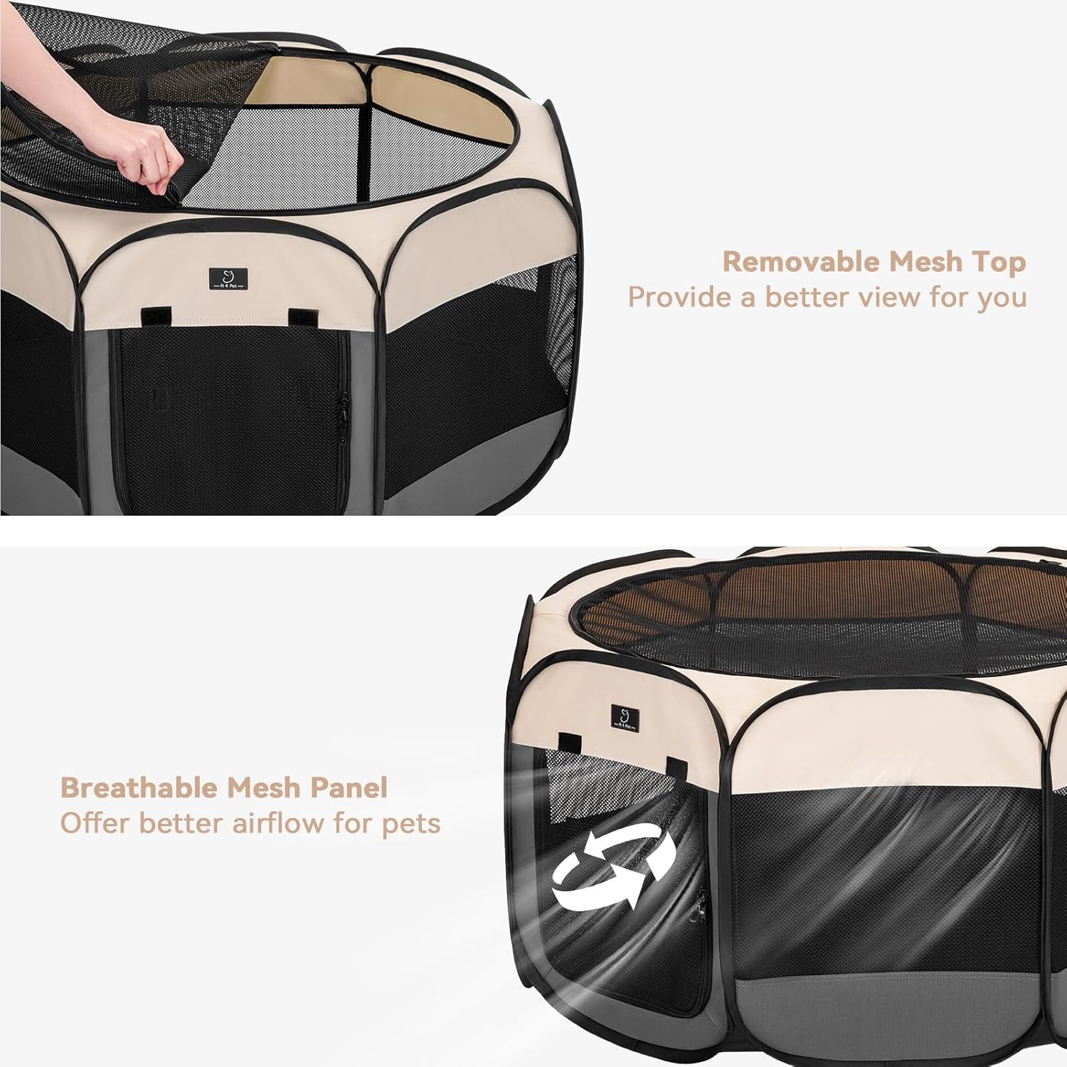 - 【Portable & Lightweight】This pet play pen can be set up quickly and fold in seconds for easy carrying and storing, no assembly required. Lightweight but durable, it is perfect for traveling, camping.