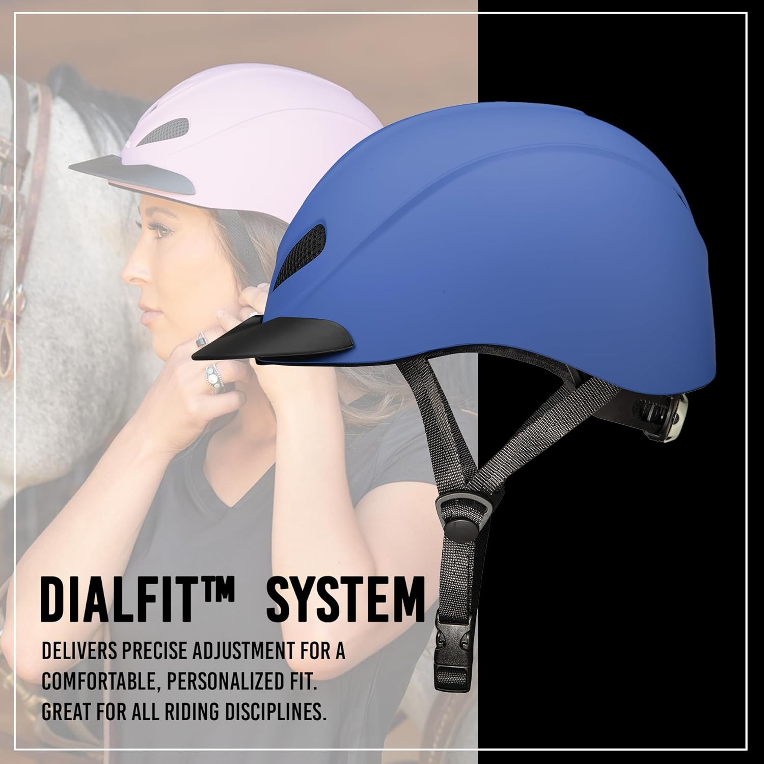 - Low-Profile Design: This sleek, modern style equestrian helmet is built to effortlessly adapt to a variety of head shapes; the adjustable horse helmet includes a DialFit system soft touch dial that allows precise adjustment for the perfect fit