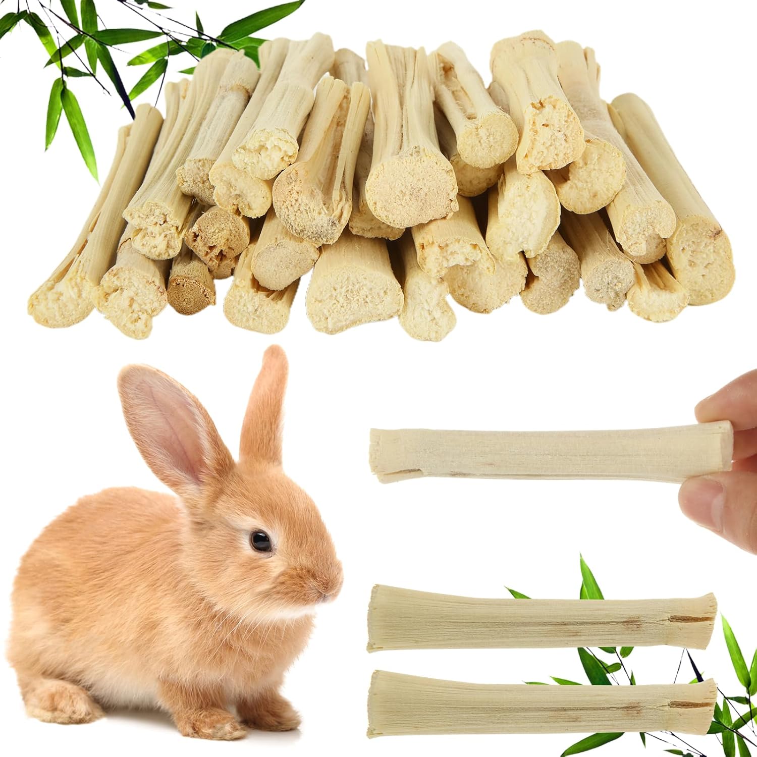 - Interaction with Pets: Sweet bamboo rabbit chew sticks are the perfect gift for small pets, suitable for hand-feeding. Rabbit bamboo chew sticks increasing interaction with pets and fostering affection, let you and your pet spend a pleasant time