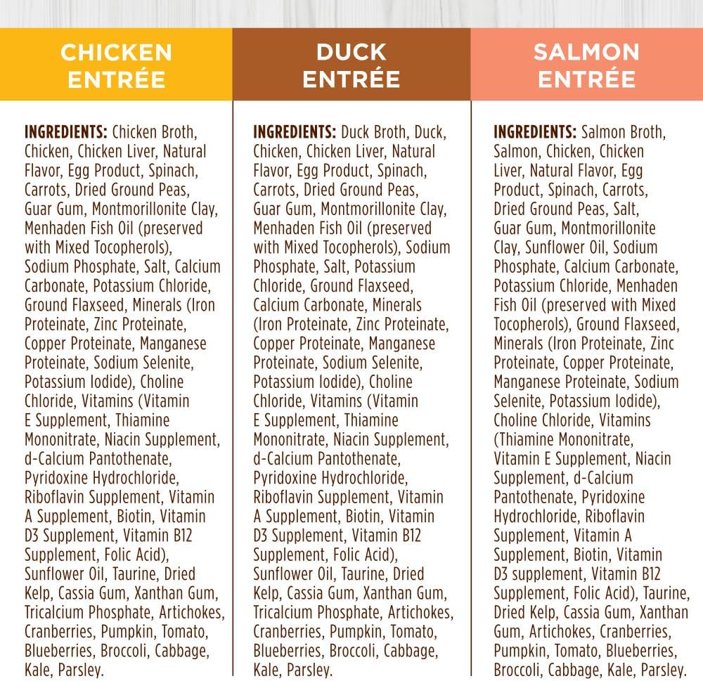 - GRAIN FREE FLAKED WET CAT FOOD VARIETY PACK: Instinct Flaked Entrées Variety Pack includes flaked cuts of chicken, duck, and salmon in a savory gravy. These high-protein recipes are crafted with real animal protein to satisfy your cat’s natural cravings.