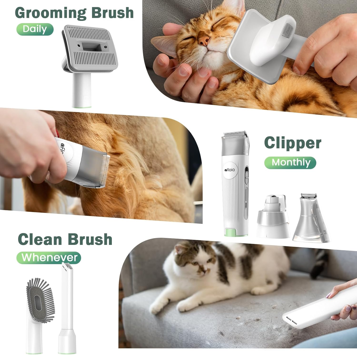 - ๐ถใProfessional Pet Salon at Homeใ Afloia dog grooming kit includes 6 attachments: grooming & deshedding tool to remove loose and tangled hair; dog clippers, paw trimmer and nail grinder can fairly do hair cut job; cleaning brush and nozzle help clean the work area. This pet grooming kit saves time and expense in going to the pet store which will pay for itself quickly.