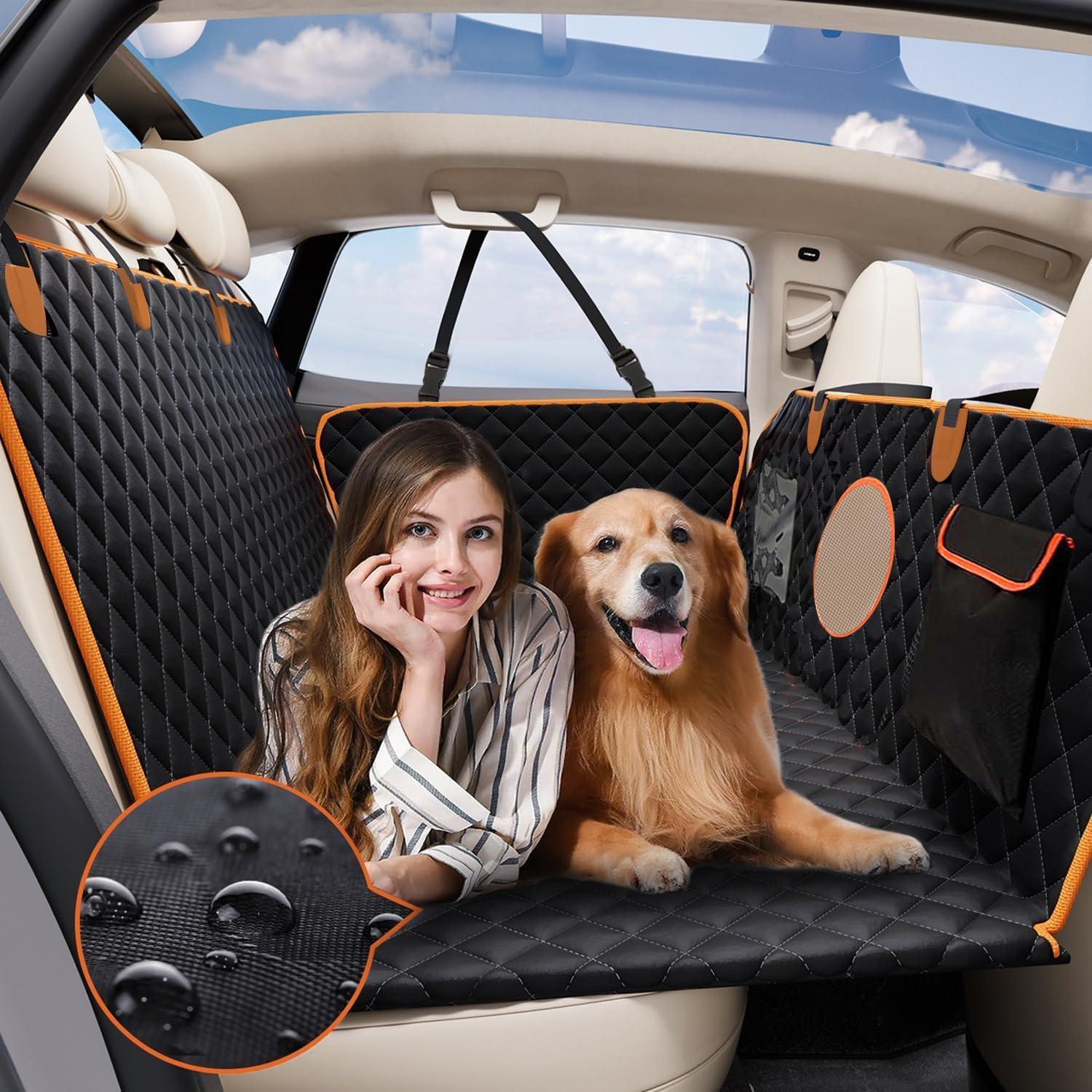 Dog Car Seat Cover for Back Seat, Hard Bottom Back Seat Extender for Dogs, Holds 420lbs, Waterproof Pet Hammock Protector, Thick and Durable Dog Seat Cover for Truck, Car, SUV-Black